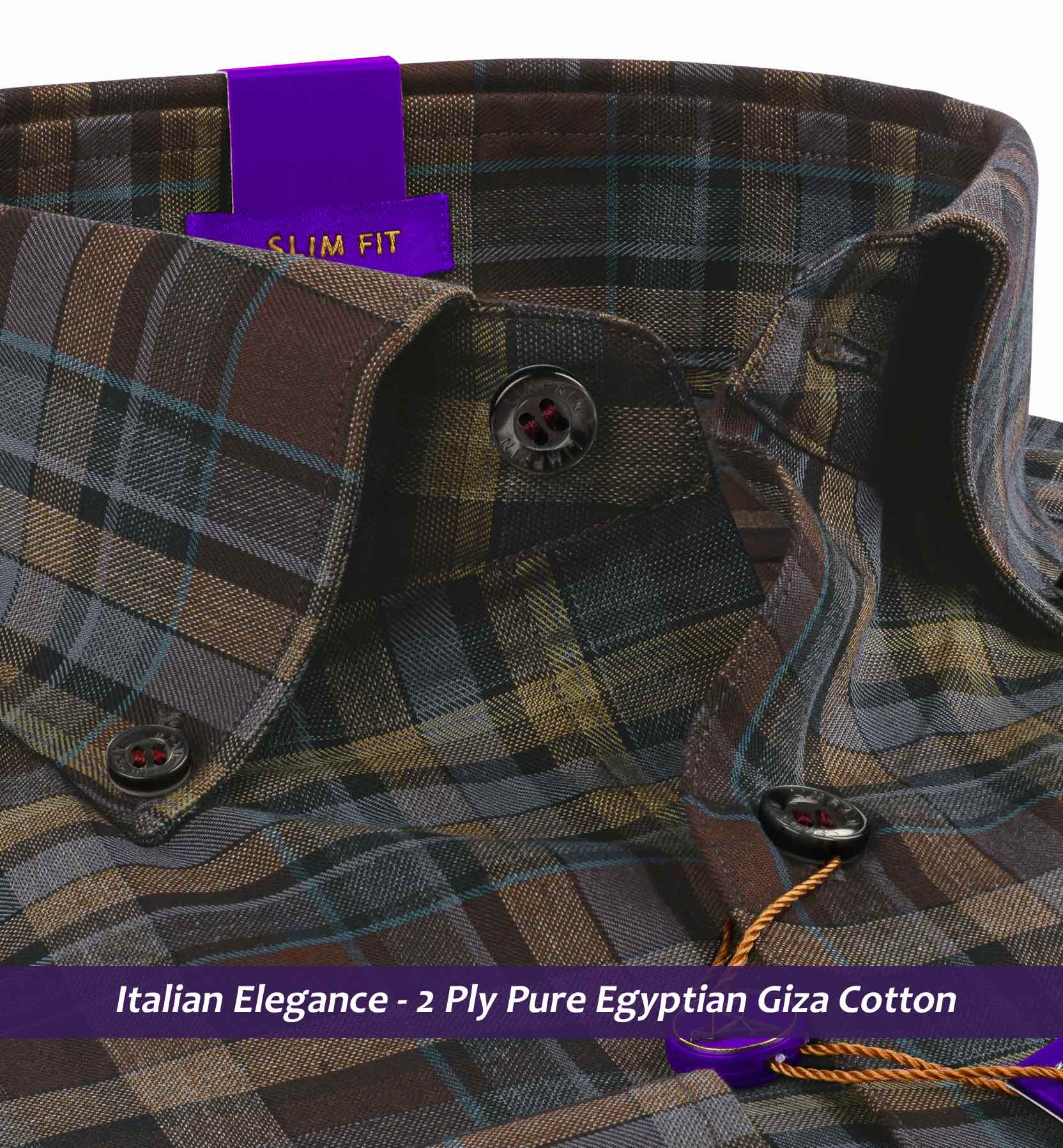 Slim/Regular fit shirt in Burgundy & Beige Check, Crafted from long staple 2 Ply Pure Egyptian Giza Cotton, Italian Elegance. Finished using superior Soft Touch technology, Rich luster and sheen as well as superior hand feel and drape.