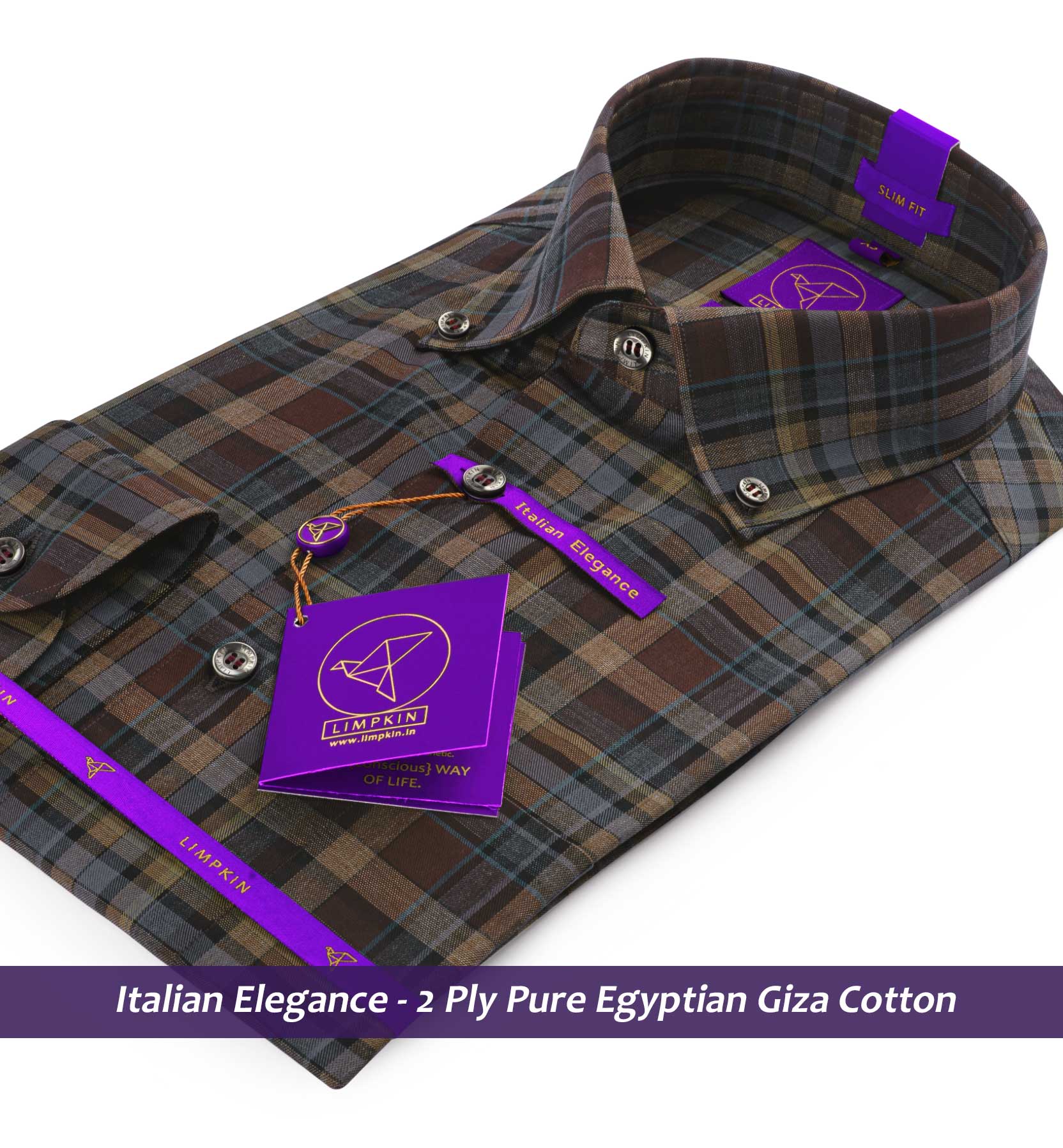 Button Down Collar, French Placket, Full Sleeves/Half Sleeves, Round Cuff with adjustable buttons & Round bottom hem, Mock Mop Buttons. These shirts are perfect for special occasions. All Limpkin Shirts are stitched with an almost invisible 18-21 stitches per inch. German interlinings in the fusing of collars and cuffs ensure a perfect shape and timeless elegance.