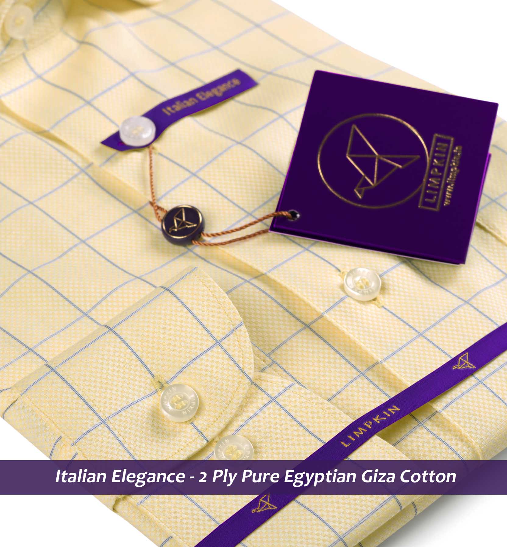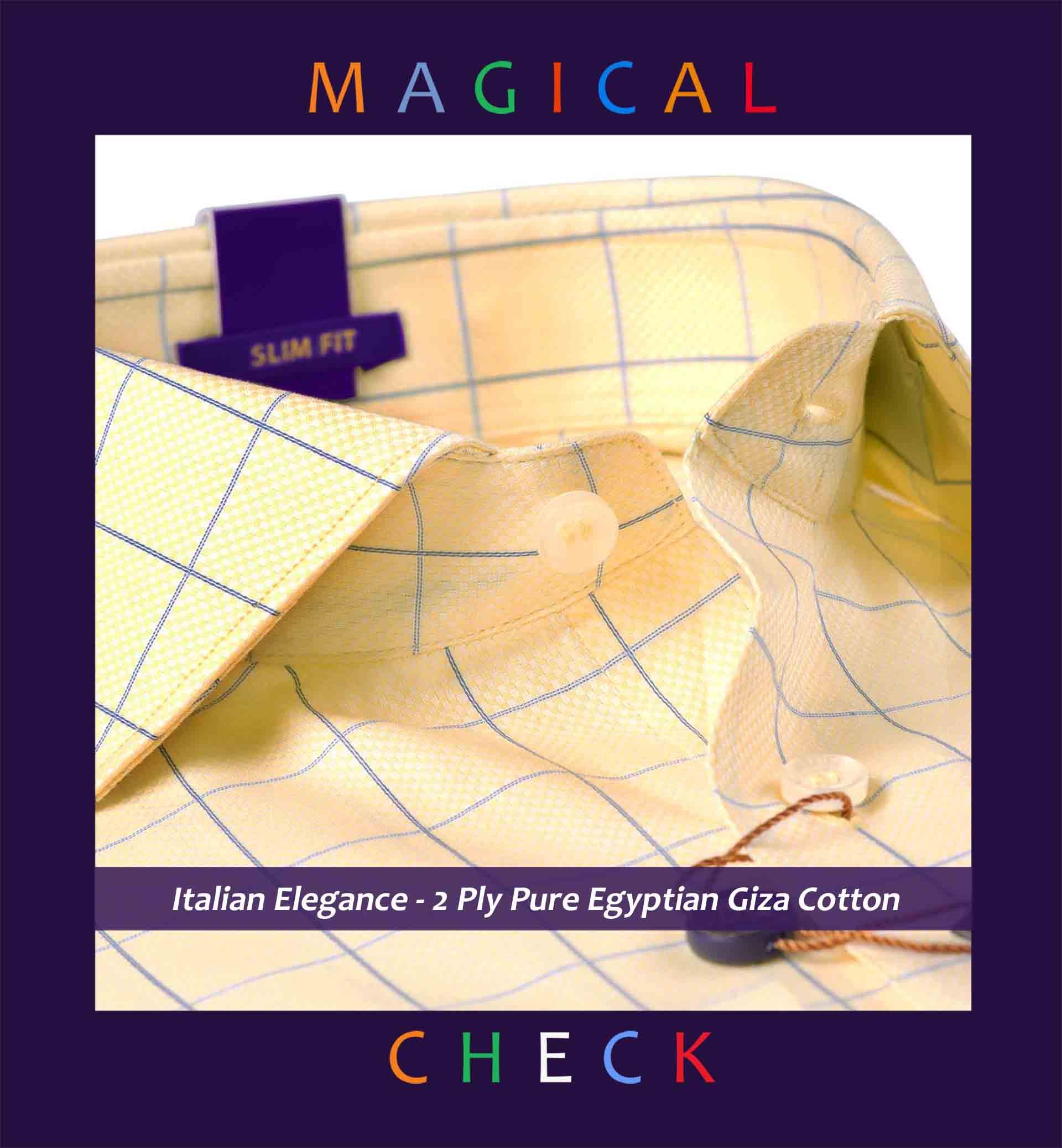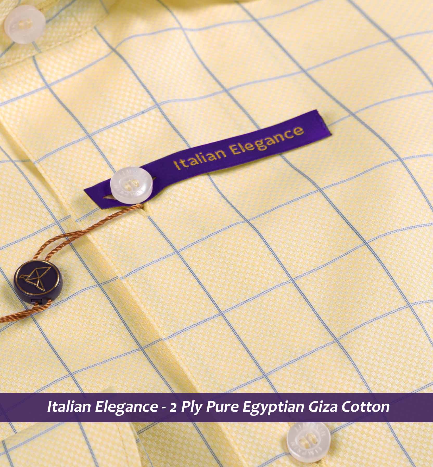 Slim/Regular fit shirt in Daffodil Yellow & Blue Check, Crafted from long staple 2 Ply Pure Egyptian Giza Cotton, Italian Elegance. Finished using superior Soft Touch technology, Rich luster and sheen as well as superior hand feel and drape.