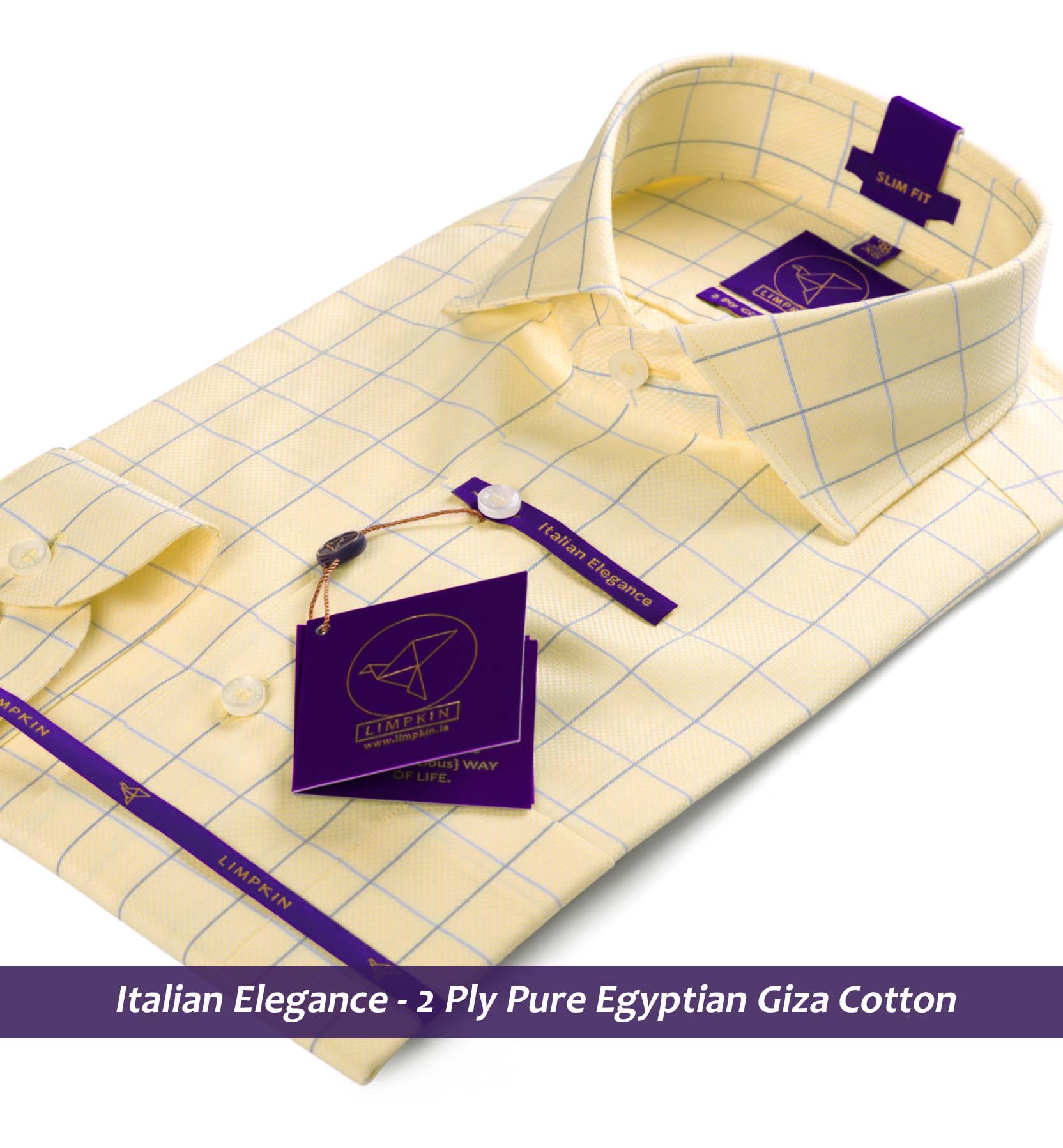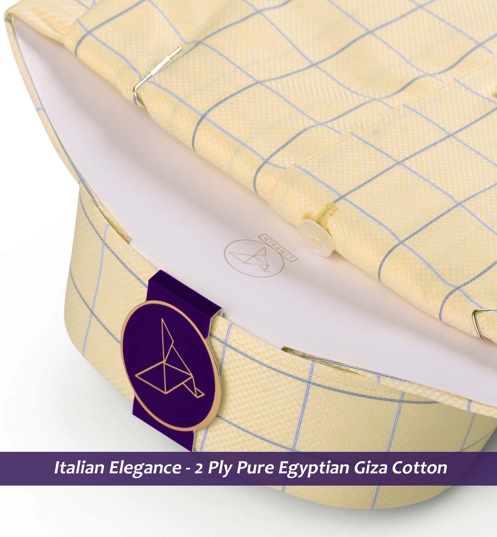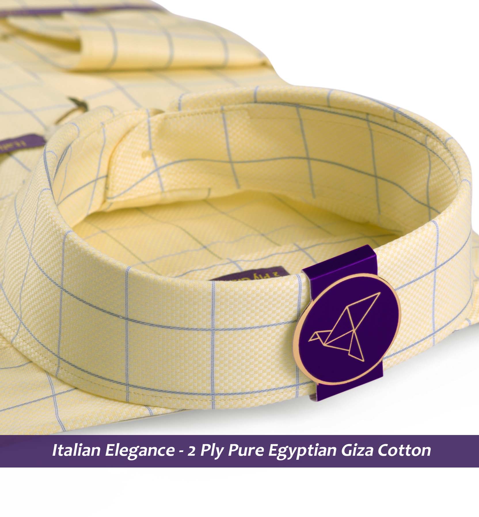 Slim/Regular fit shirt in Daffodil Yellow & Blue Check, Crafted from long staple 2 Ply Pure Egyptian Giza Cotton, Italian Elegance. Finished using superior Soft Touch technology, Rich luster and sheen as well as superior hand feel and drape.