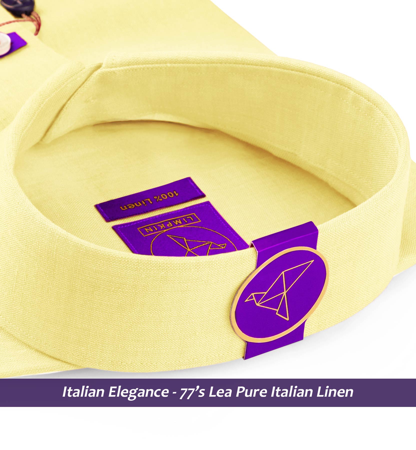Slim/Regular fit shirt in Daffodil Yellow Solid Linen, Crafted from long staple 77's Lea Linen yarn, Italian Elegance, Plain Weave, Subtle sheen as well as superior hand feel and drape.