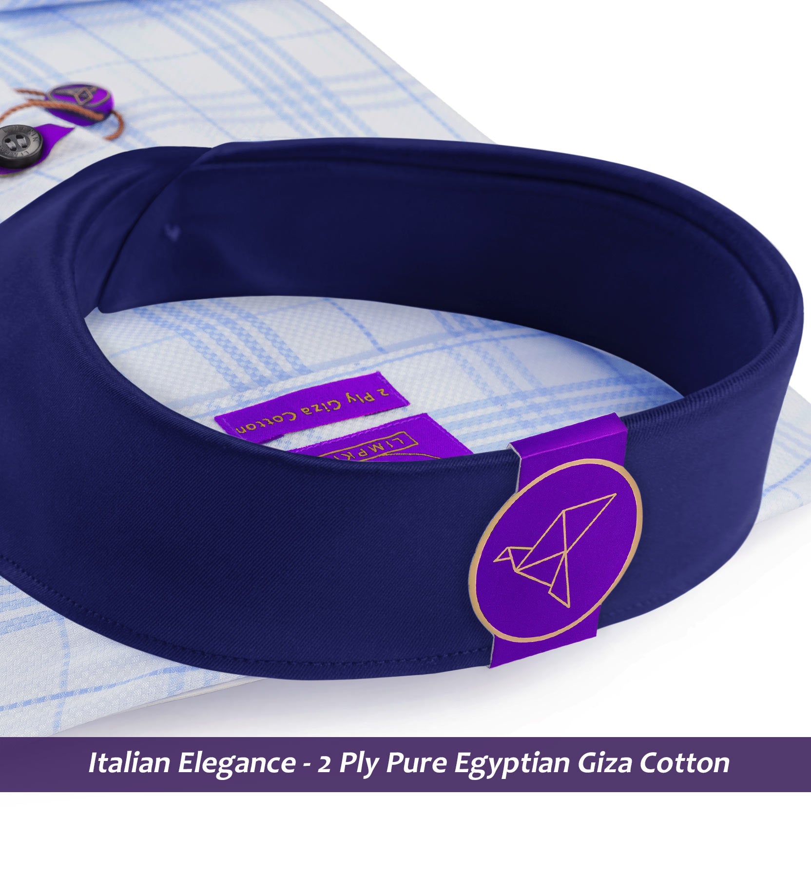 Slim/Regular fit shirt in Azure Blue & White Check with Navy Collar, Crafted from long staple 2 Ply Pure Egyptian Giza Cotton, Italian Elegance. Finished using superior Soft Touch technology, Rich luster and sheen as well as superior hand feel and drape.