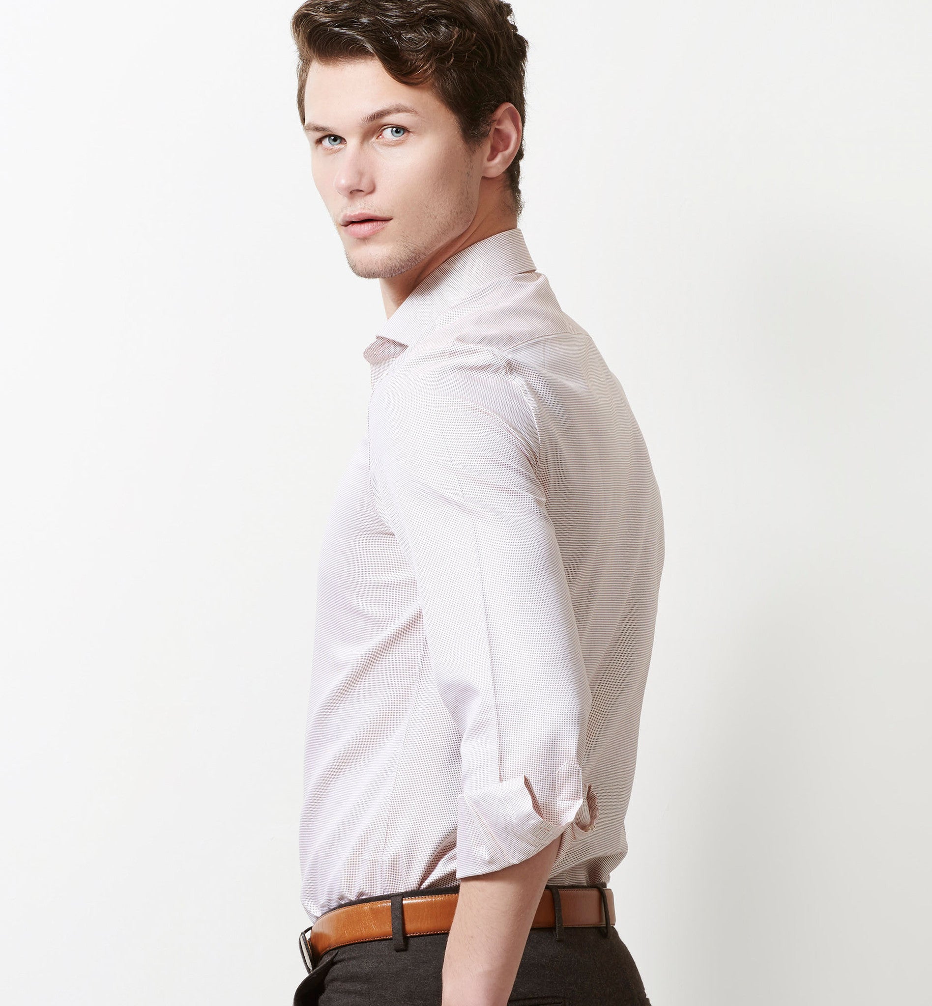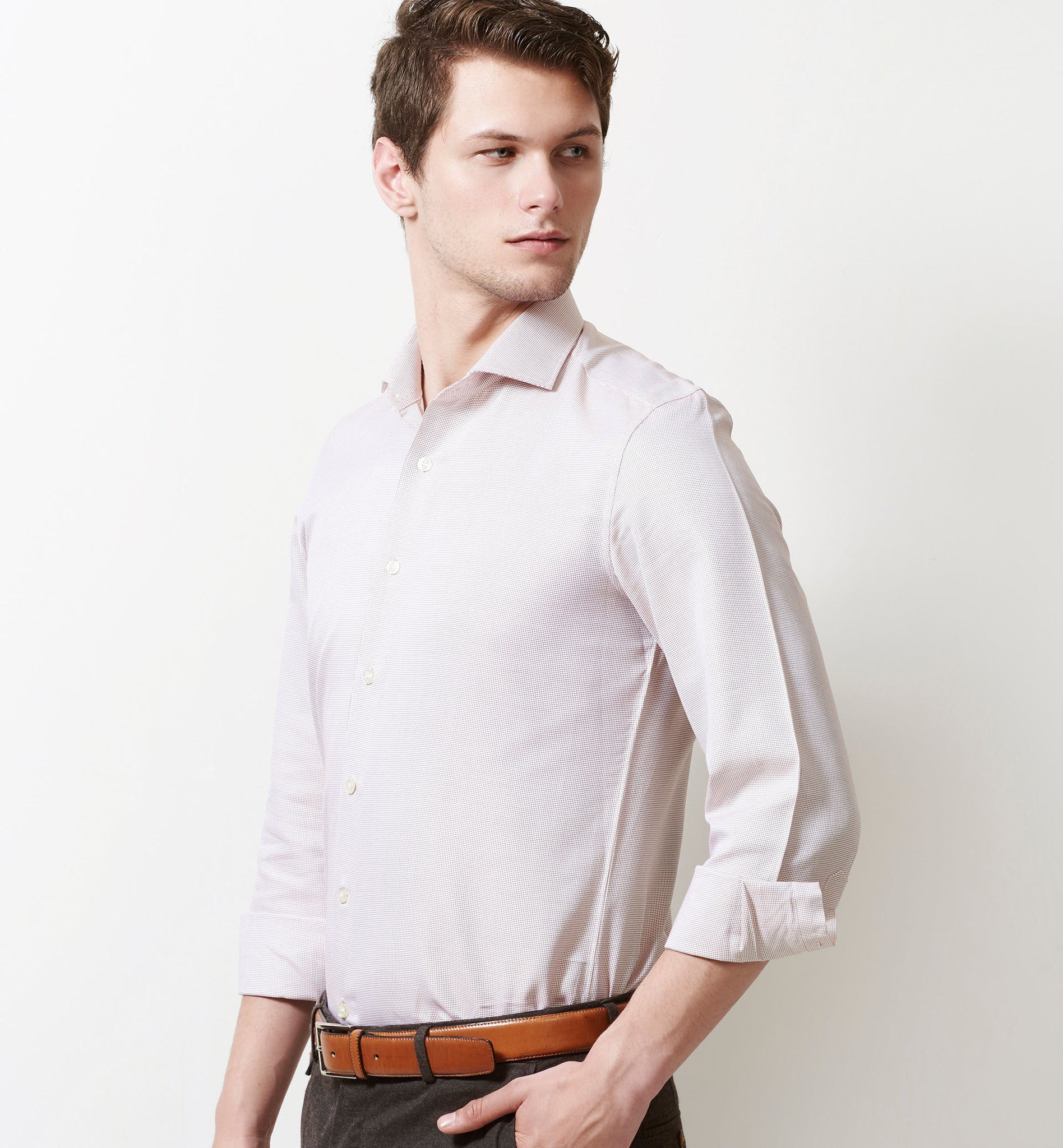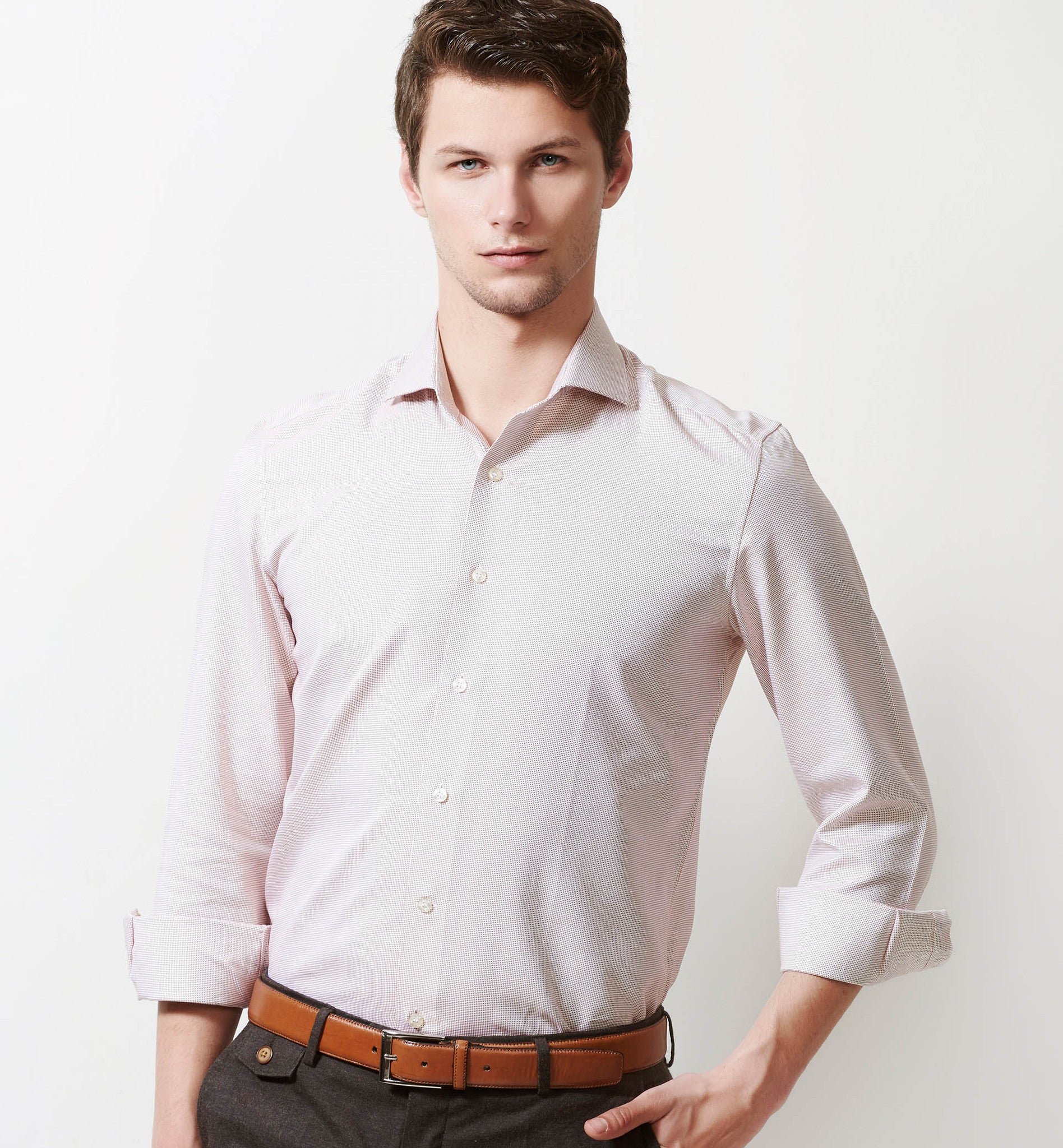 Slim/Regular fit shirt in Beige Magical Structure, Crafted from long staple 2 Ply Pure Egyptian Giza Cotton, Italian Elegance, Structure Base, Finished using superior Soft Touch technology, Rich luster and sheen as well as superior hand feel and drape.