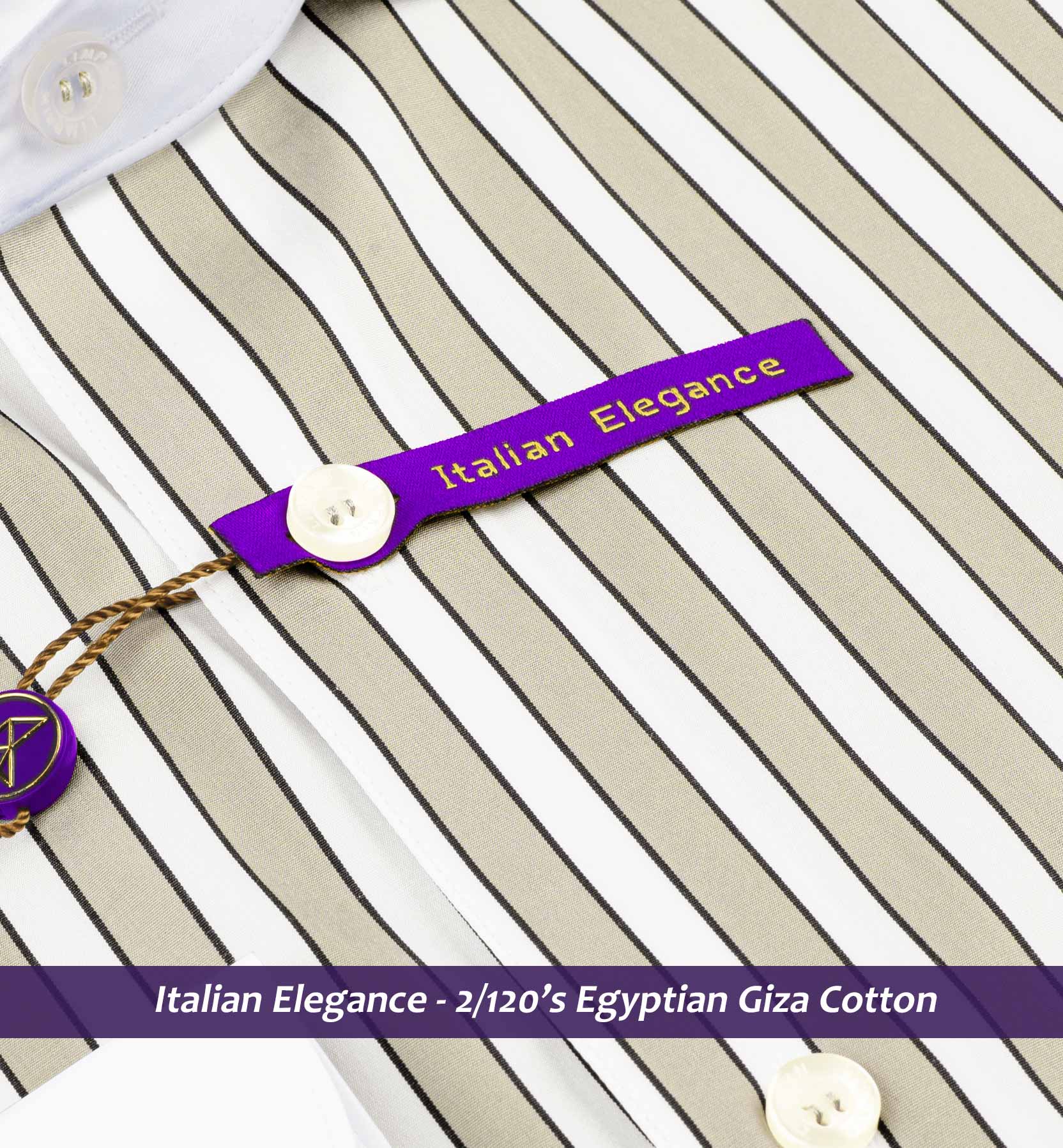 Slim/Regular fit shirt in Beige & Mocha Brown Stripe with White Collar, Crafted from long staple Giza 2/120 yarn from Egypt, Italian Elegance, Finished using superior Soft Touch technology, Rich luster and sheen as well as superior hand feel and drape.
