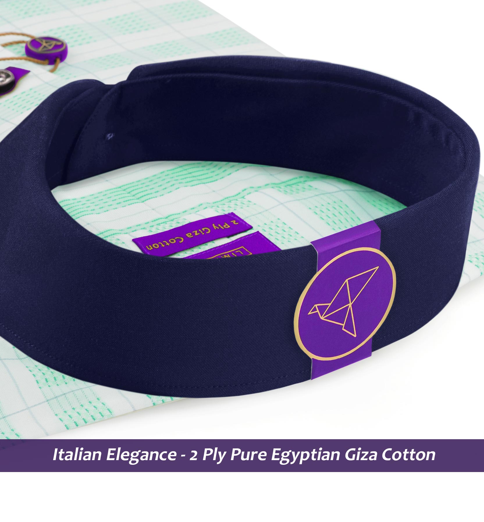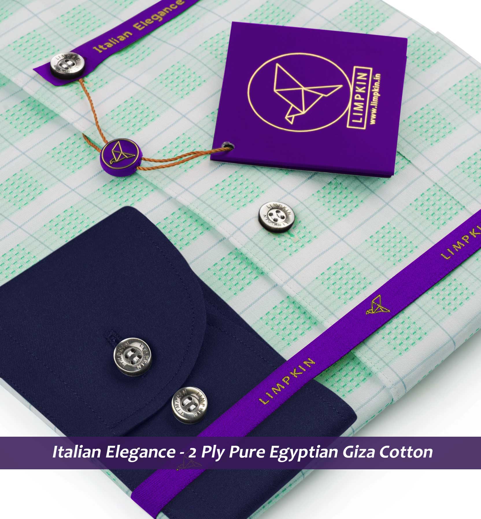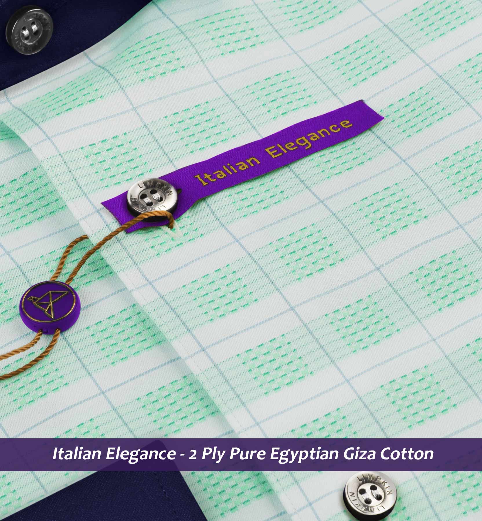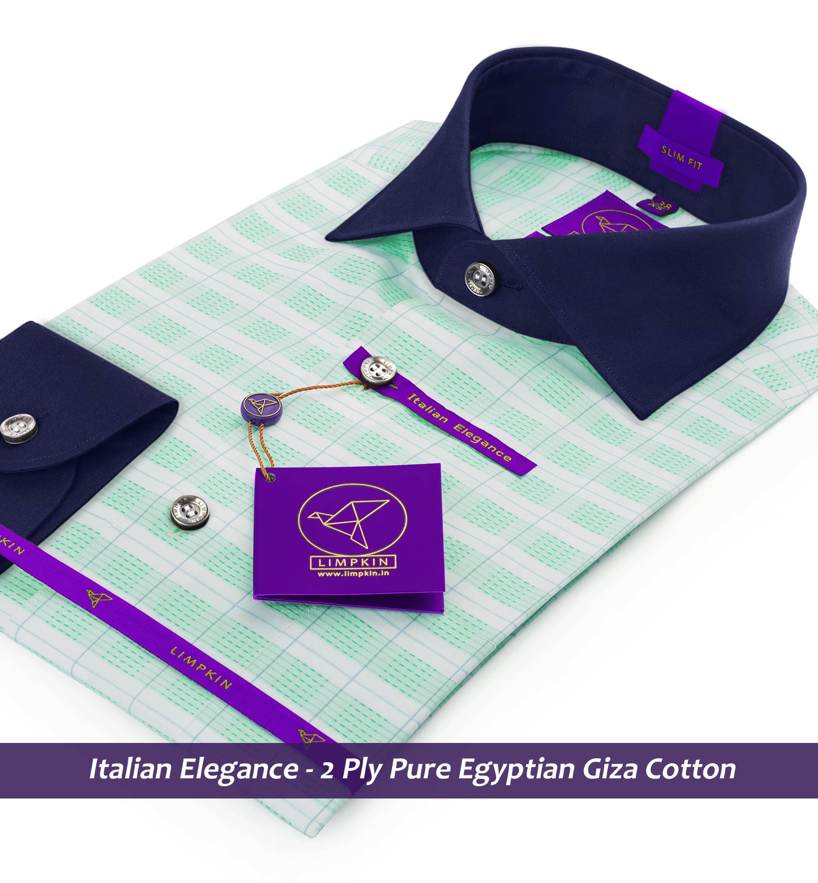 Slim/Regular fit shirt in Emerald Green & White Check with Navy Collar, Crafted from long staple 2 Ply Pure Egyptian Giza Cotton, Italian Elegance. Finished using superior Soft Touch technology, Rich luster and sheen as well as superior hand feel and drape.
