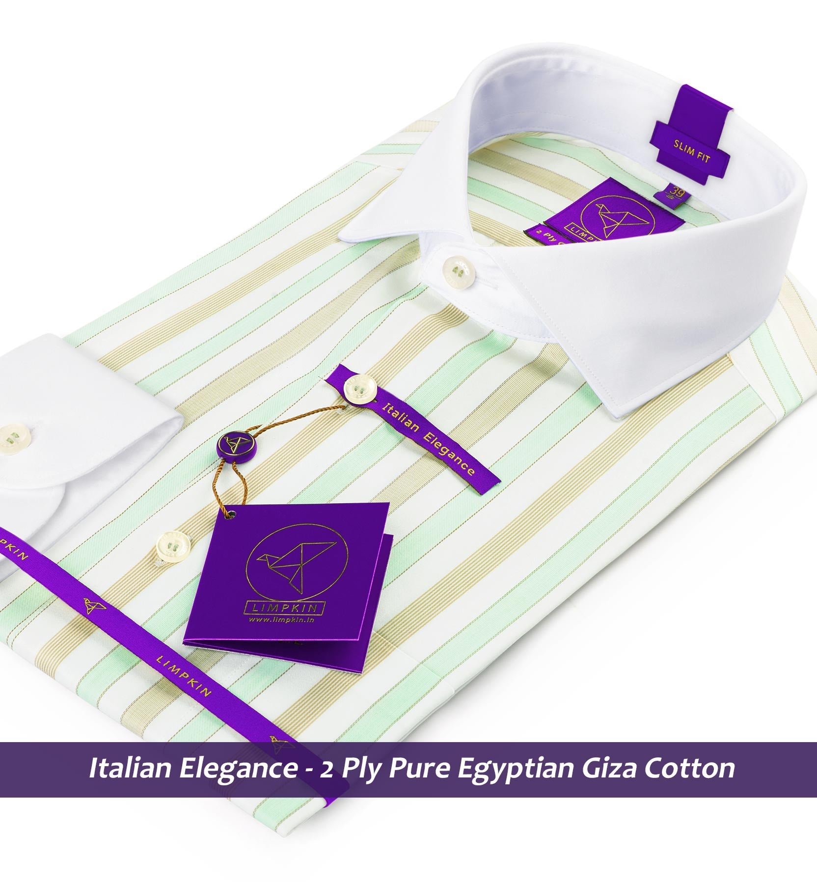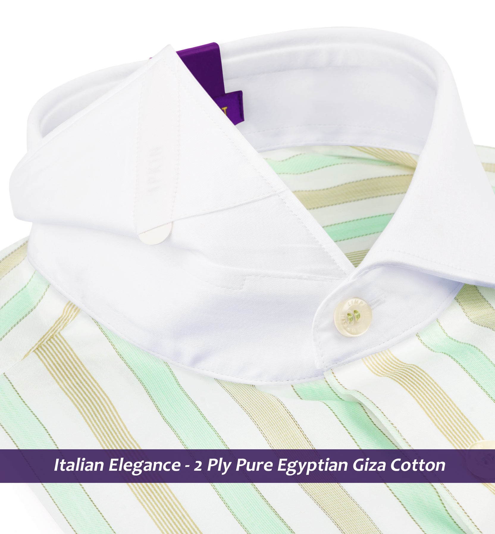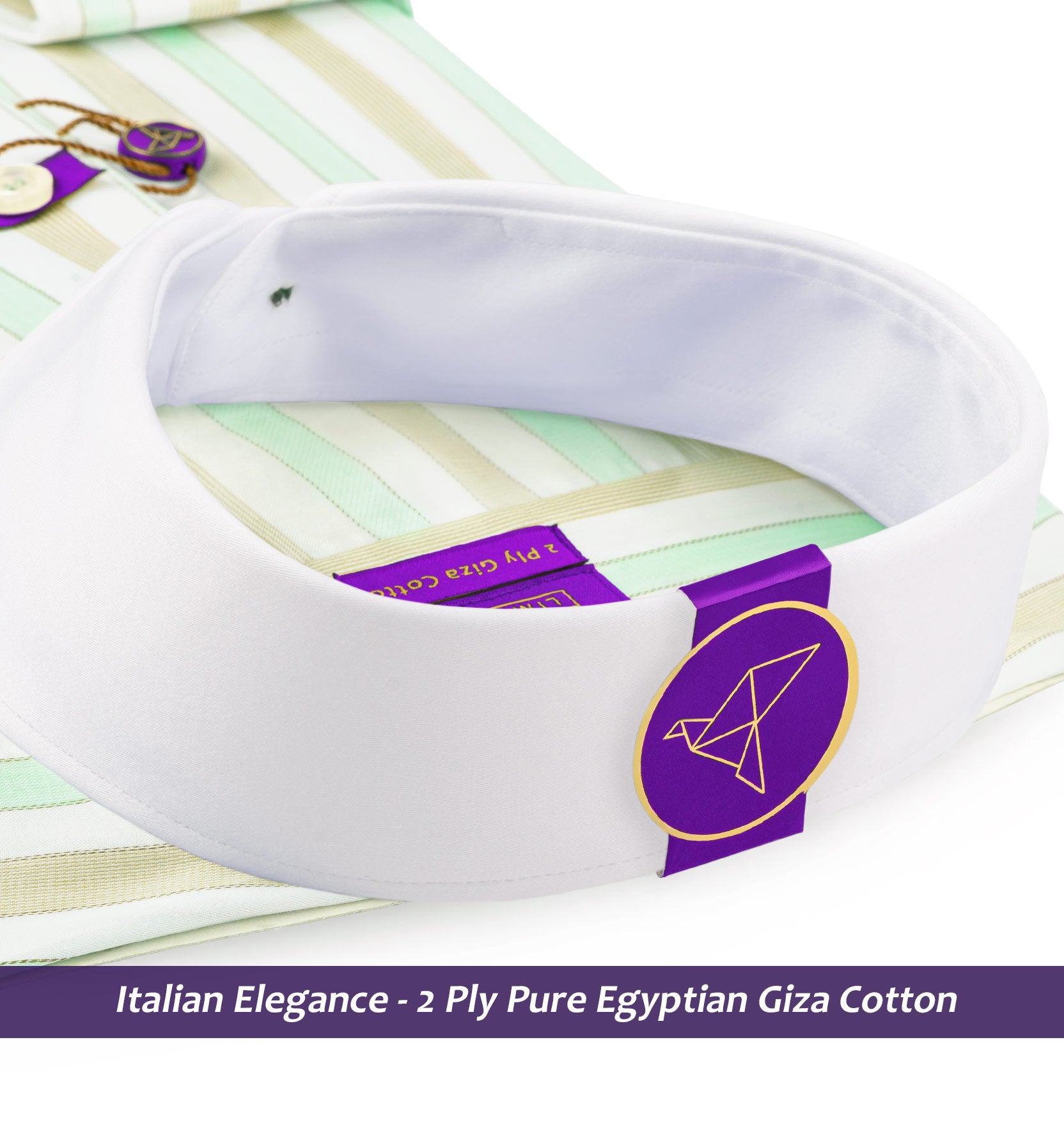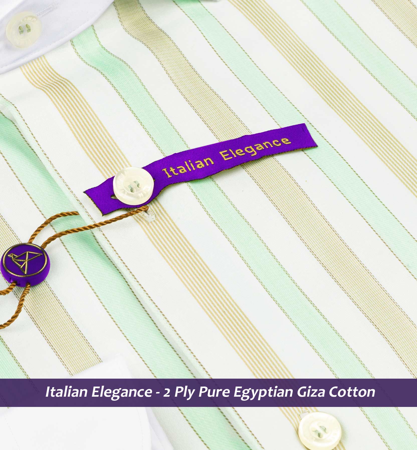 Slim/Regular fit shirt in Mint Green & Beige Stripe with White Collar, Crafted from long staple 2 Ply Pure Egyptian Giza Cotton, Italian Elegance, Finished using superior Soft Touch technology, Rich luster and sheen as well as superior hand feel and drape.