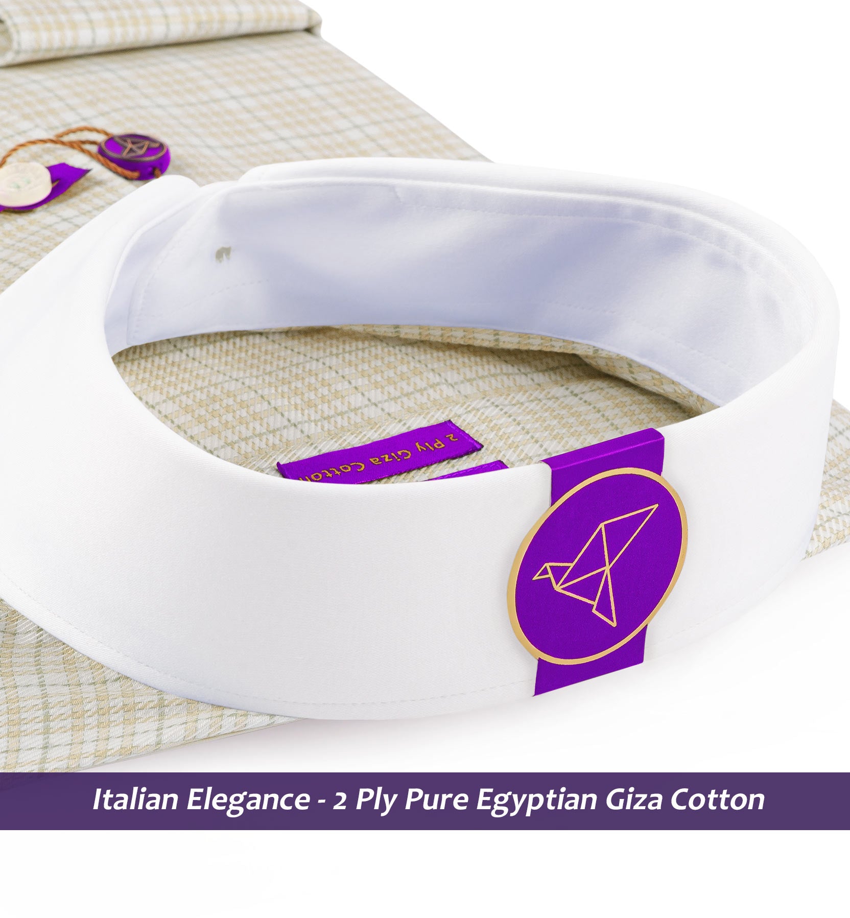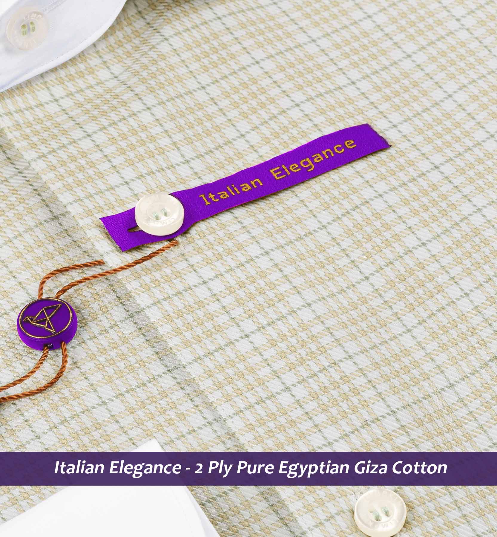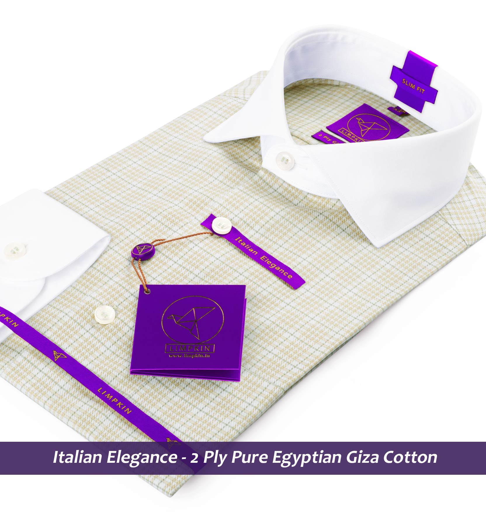 Slim/Regular fit shirt in Beige & Moss Green Check with White Collar, Crafted from long staple 2 Ply Pure Egyptian Giza Cotton, Italian Elegance, Finished using superior Soft Touch technology, Rich luster and sheen as well as superior hand feel and drape.