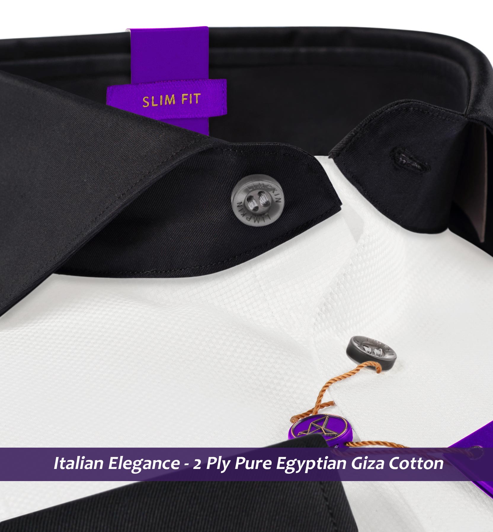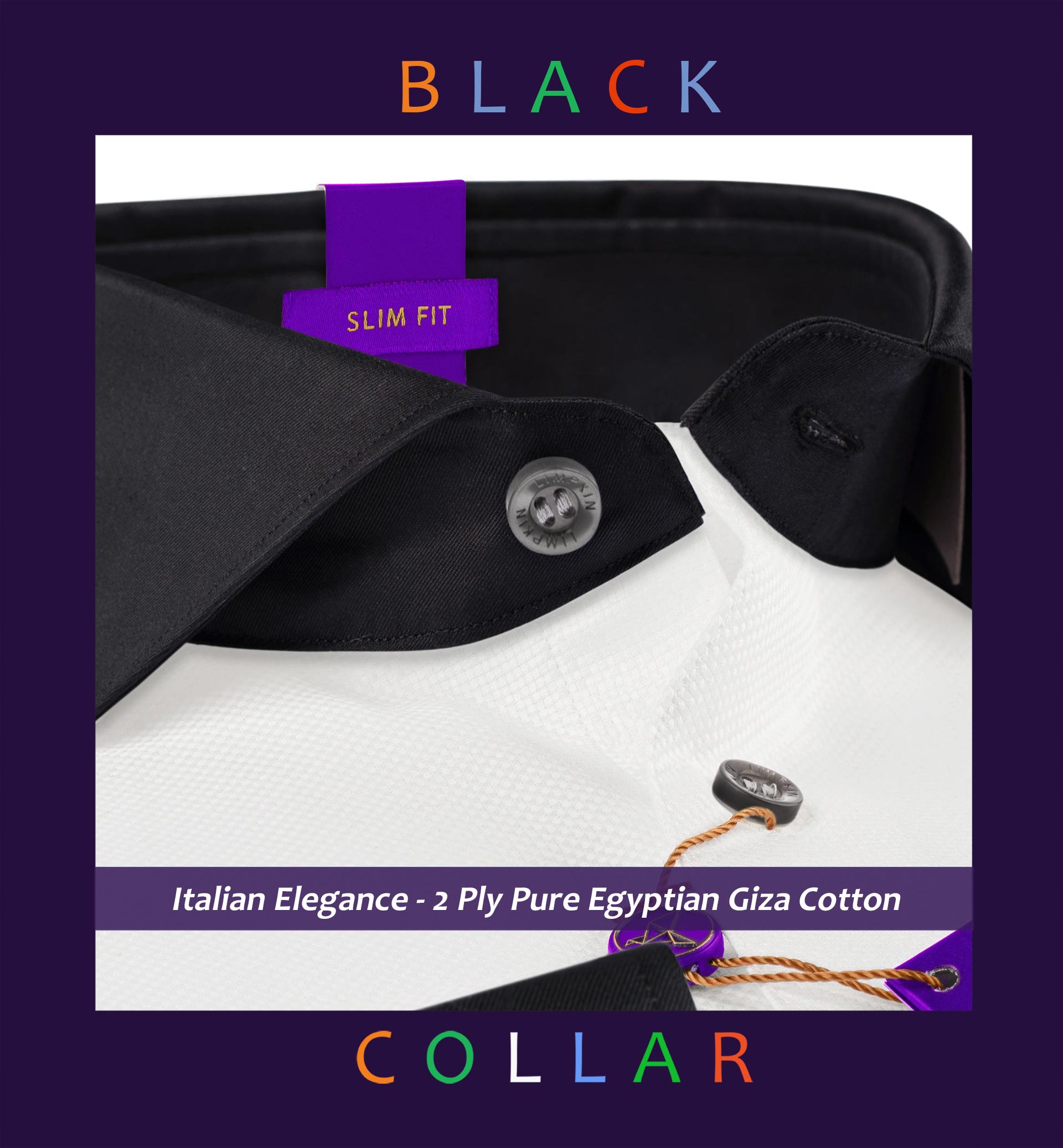 Slim/Regular fit shirt in The Best White Structure with Black Collar, Crafted from long staple 2 Ply Pure Egyptian Giza Cotton, Italian Elegance, Finished using superior Soft Touch technology, Structure Base, Rich luster and sheen as well as superior hand feel and drape.