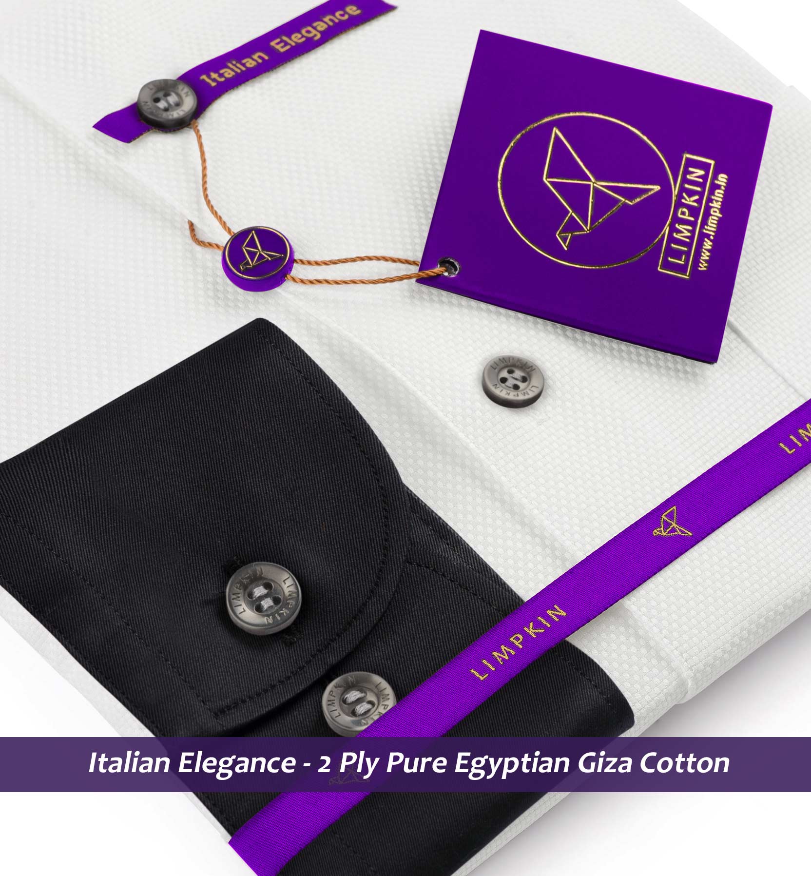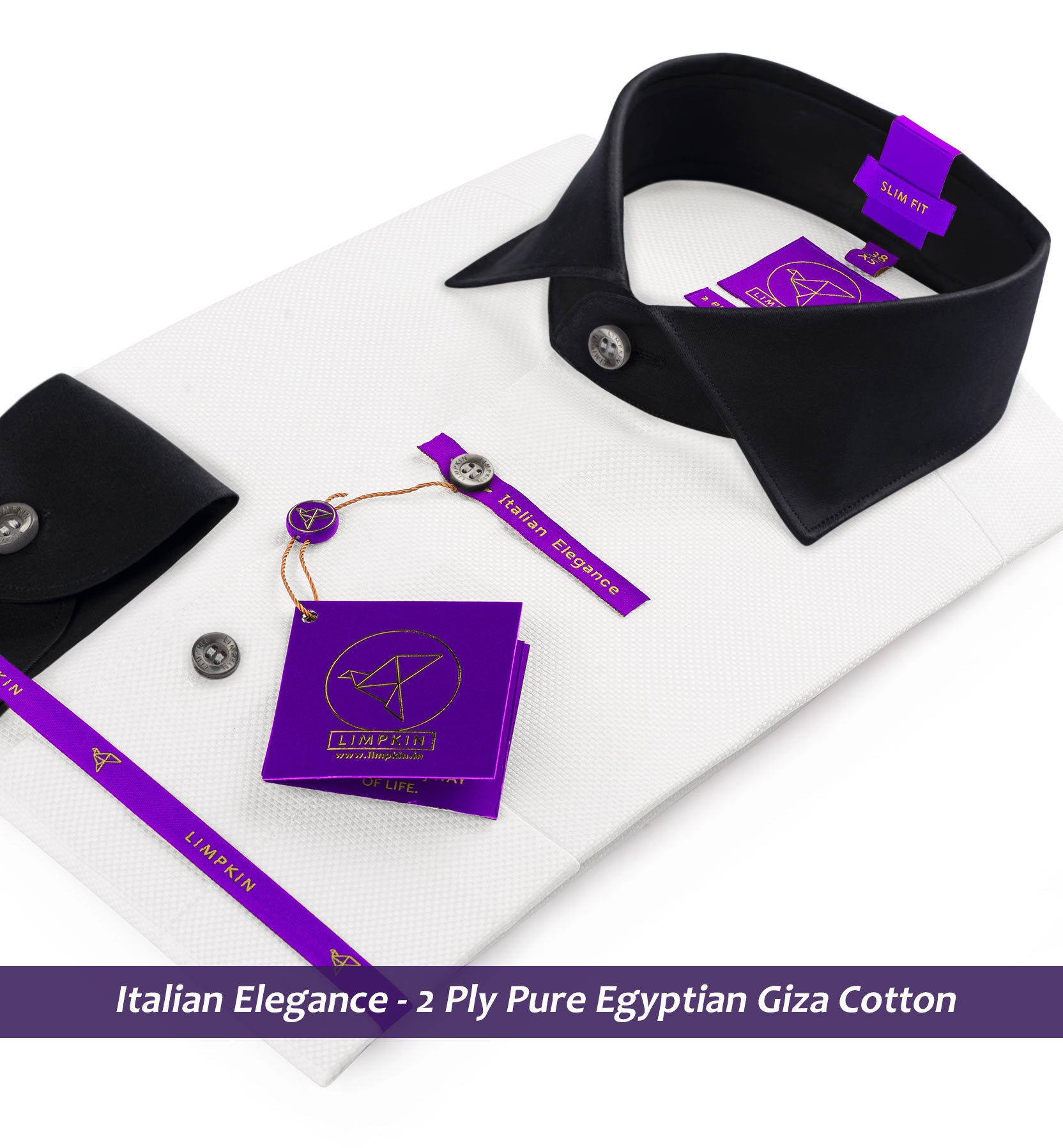 Full Cutaway Collar, French Placket, Full Sleeves/Half Sleeves, Round Cuff with adjustable buttons, Round Bottom Hem, Mock Mop Buttons, Detachable Collar Stays, Black Collar & Cuff for that Elegant Look. These shirts are perfect for Special Occasions. All Limpkin Shirts are stitched with an almost invisible 18-21 stitches per inch. German interlinings in the fusing of collars and cuffs ensure a perfect shape and timeless elegance.