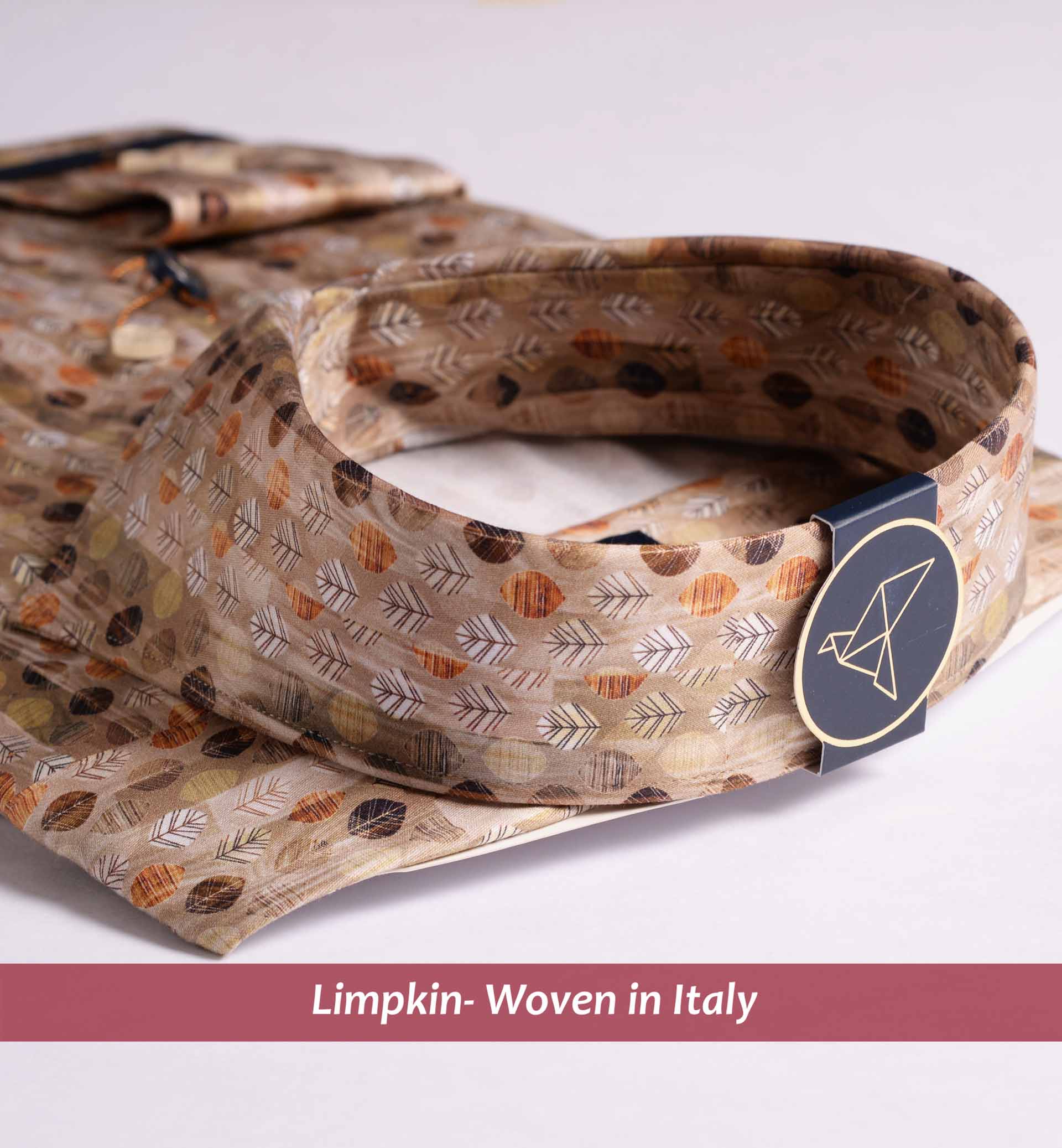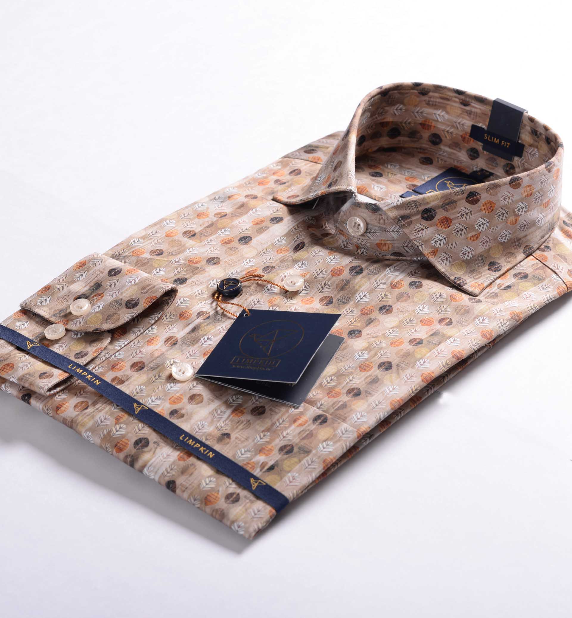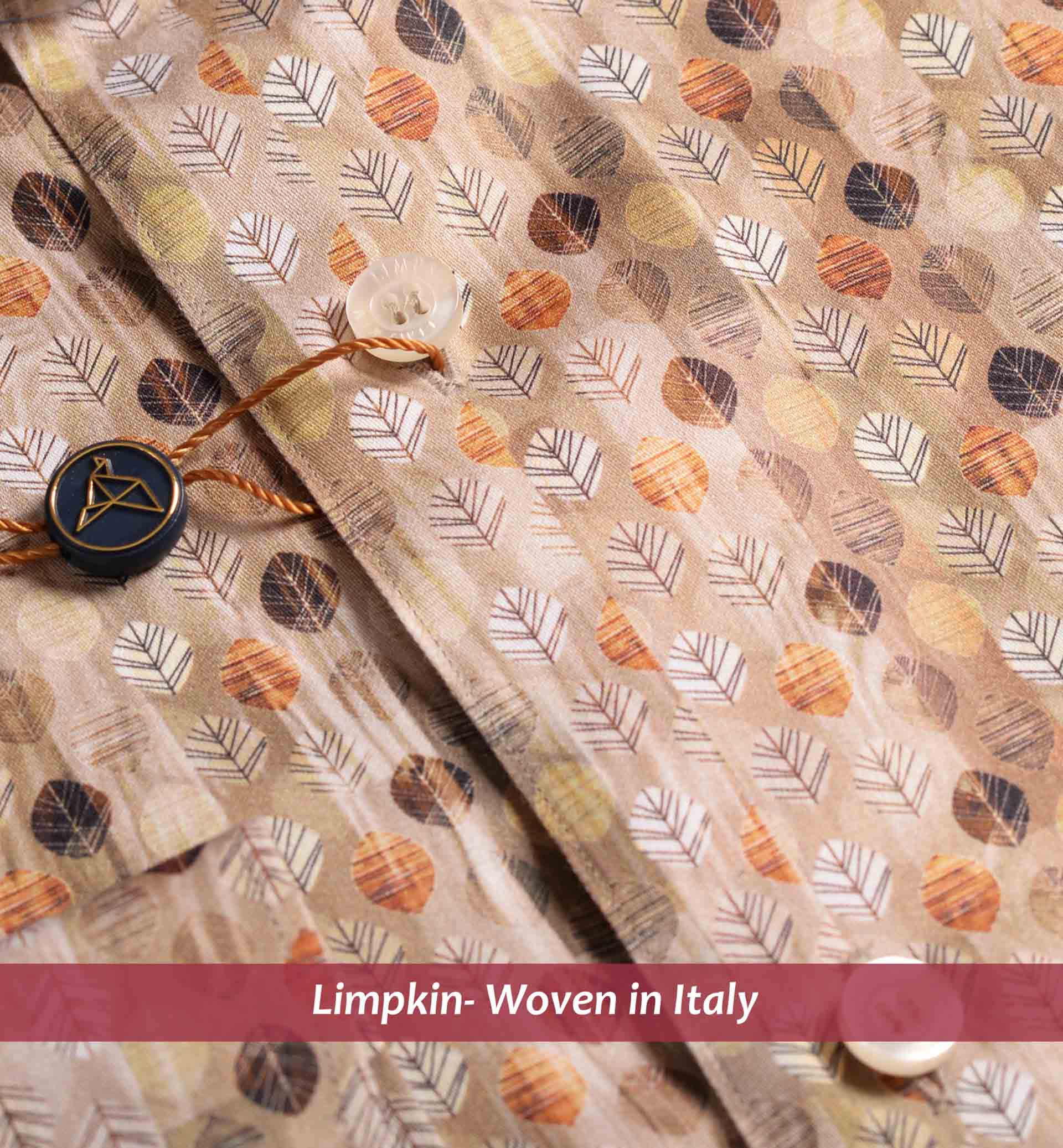 Slim/Regular fit shirt in Beige & Brown Leaf Print, Crafted from long staple Pure Egyptian Giza Cotton, Italian Elegance, Finished using superior Soft Touch technology, Rich luster and sheen as well as superior hand feel and drape.