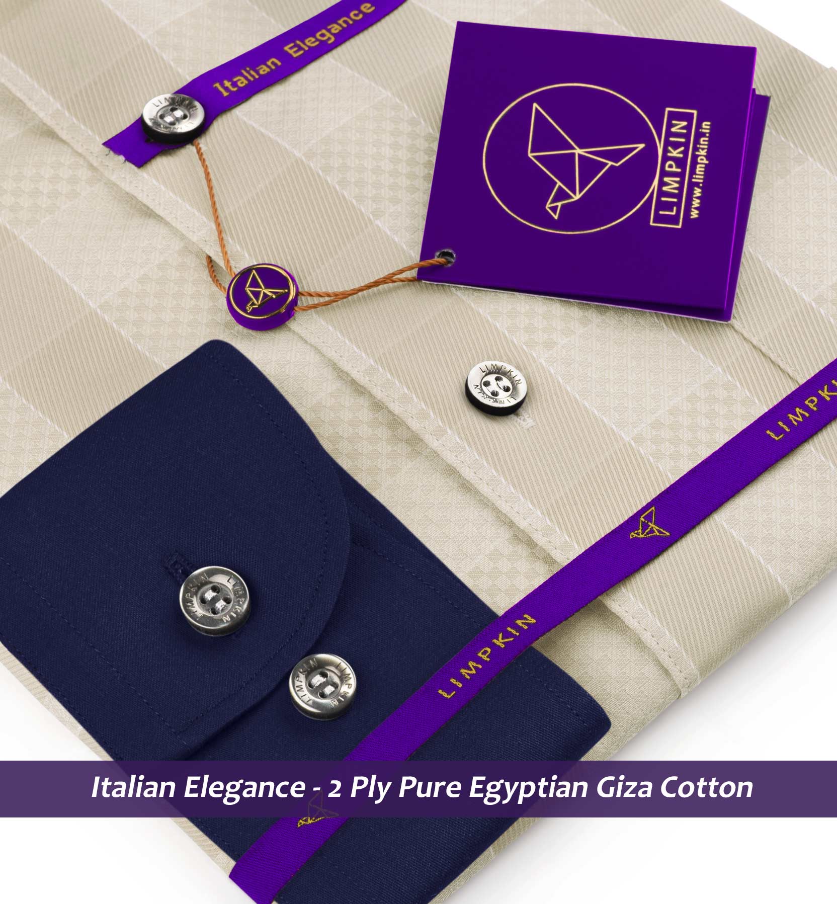 Full Cutaway Collar, French Placket, Full Sleeves/Half Sleeves, Round Cuff with adjustable buttons & Round bottom hem, Mock Mop Buttons, Detachable Collar Stays, White Collar & Cuff for that elegant look. These shirts are perfect for Special Occasions. All Limpkin Shirts are stitched with an almost invisible 18-21 stitches per inch. German interlinings in the fusing of collars and cuffs ensure a perfect shape and timeless elegance.
