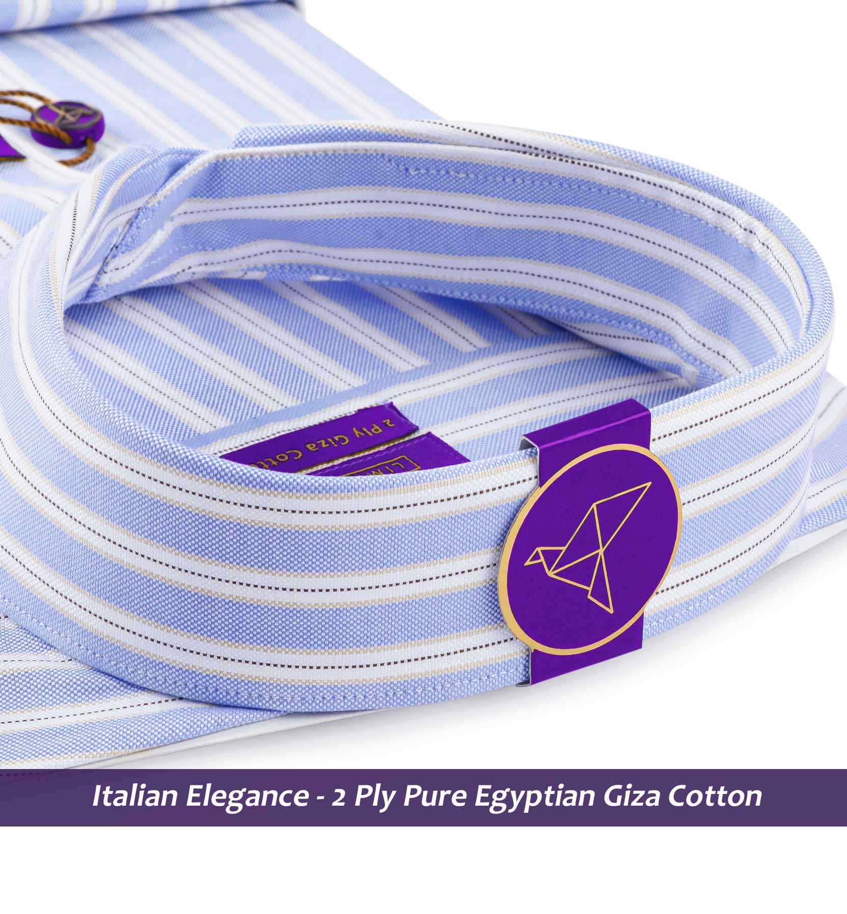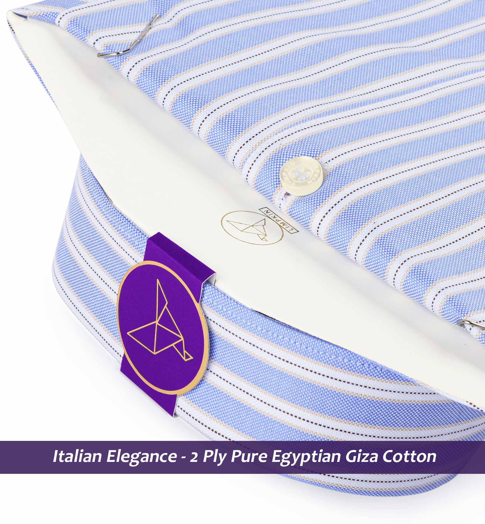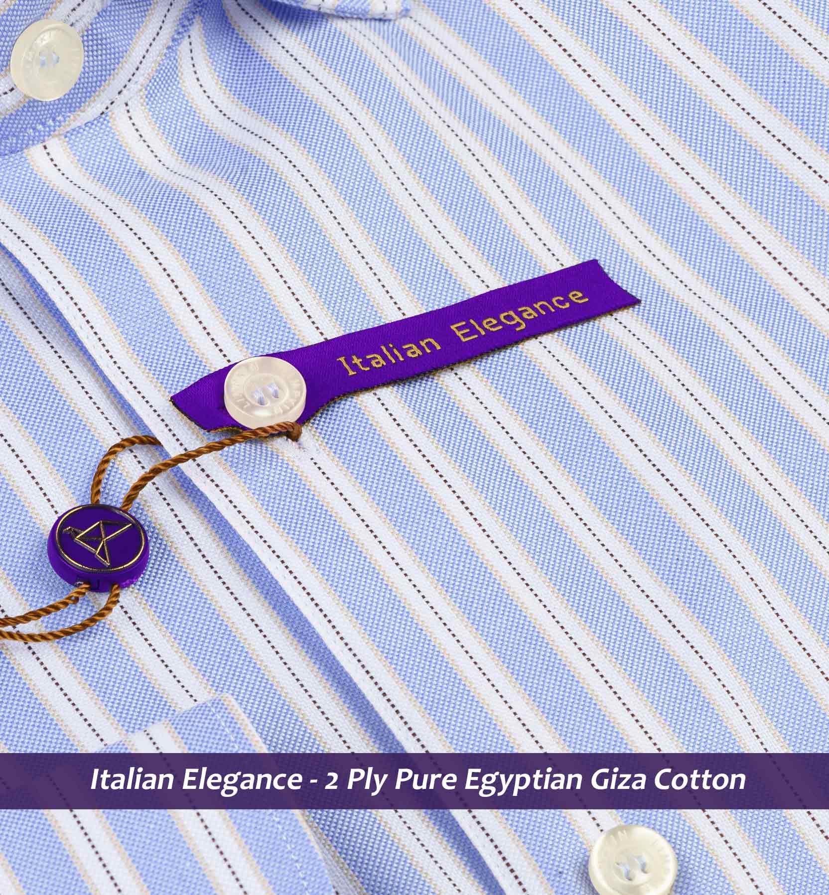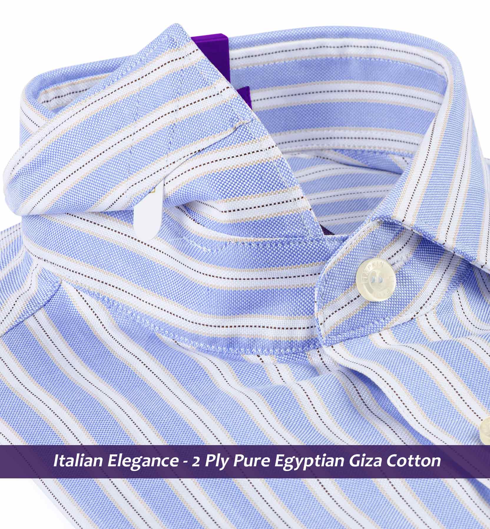 Slim/Regular fit shirt in Azure Blue & Navy Stripe, Crafted from long staple 2 Ply Pure Egyptian Giza Cotton, Italian Elegance. Finished using superior Soft Touch technology, Soft luster and sheen as well as superior hand feel and drape.