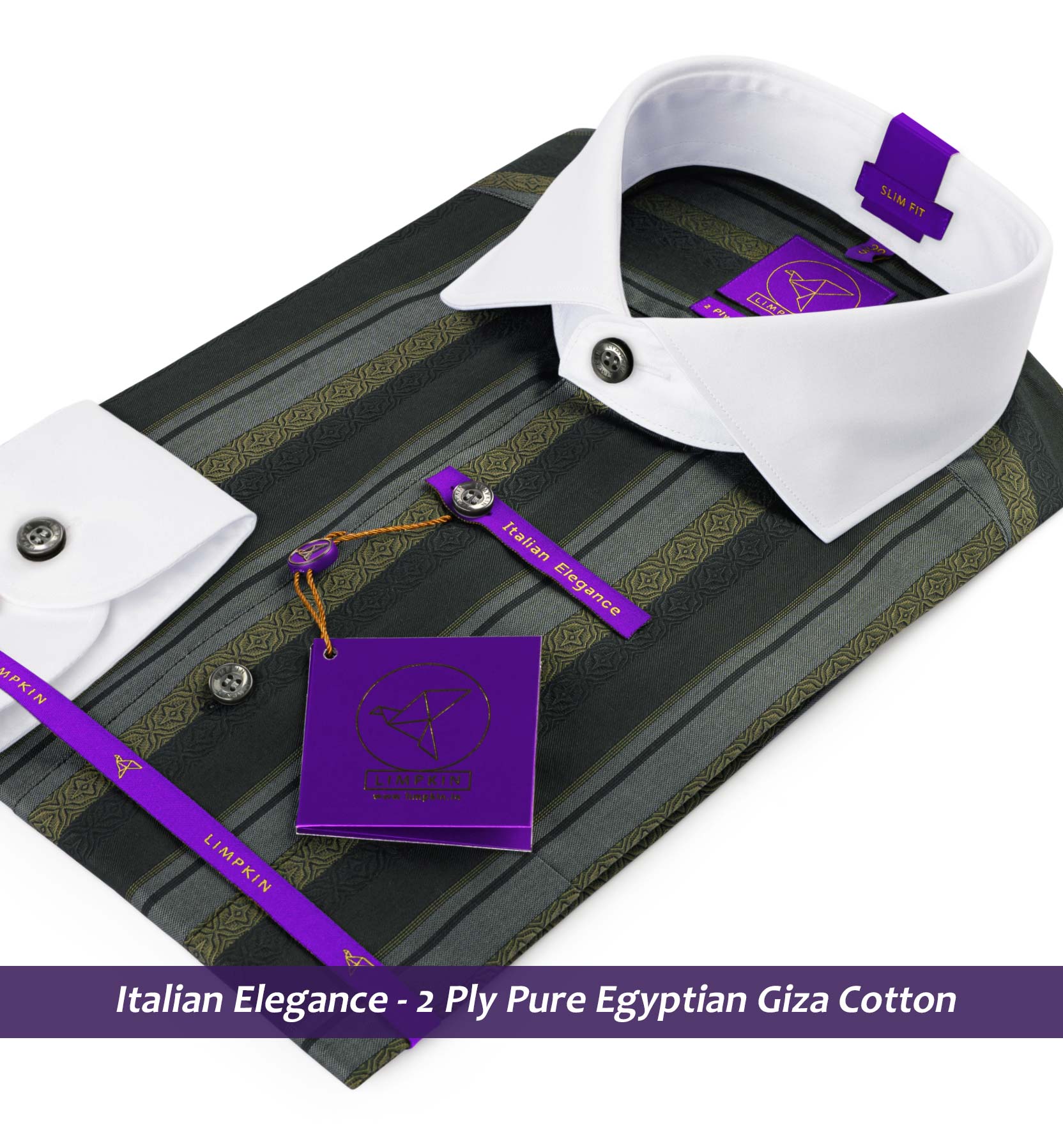 Slim/Regular fit shirt in Grey & Beige Stripe with White Collar, Crafted from long staple 2 Ply Pure Egyptian Giza Cotton, Italian Elegance, Finished using superior Soft Touch technology, Rich luster and sheen as well as superior hand feel and drape.