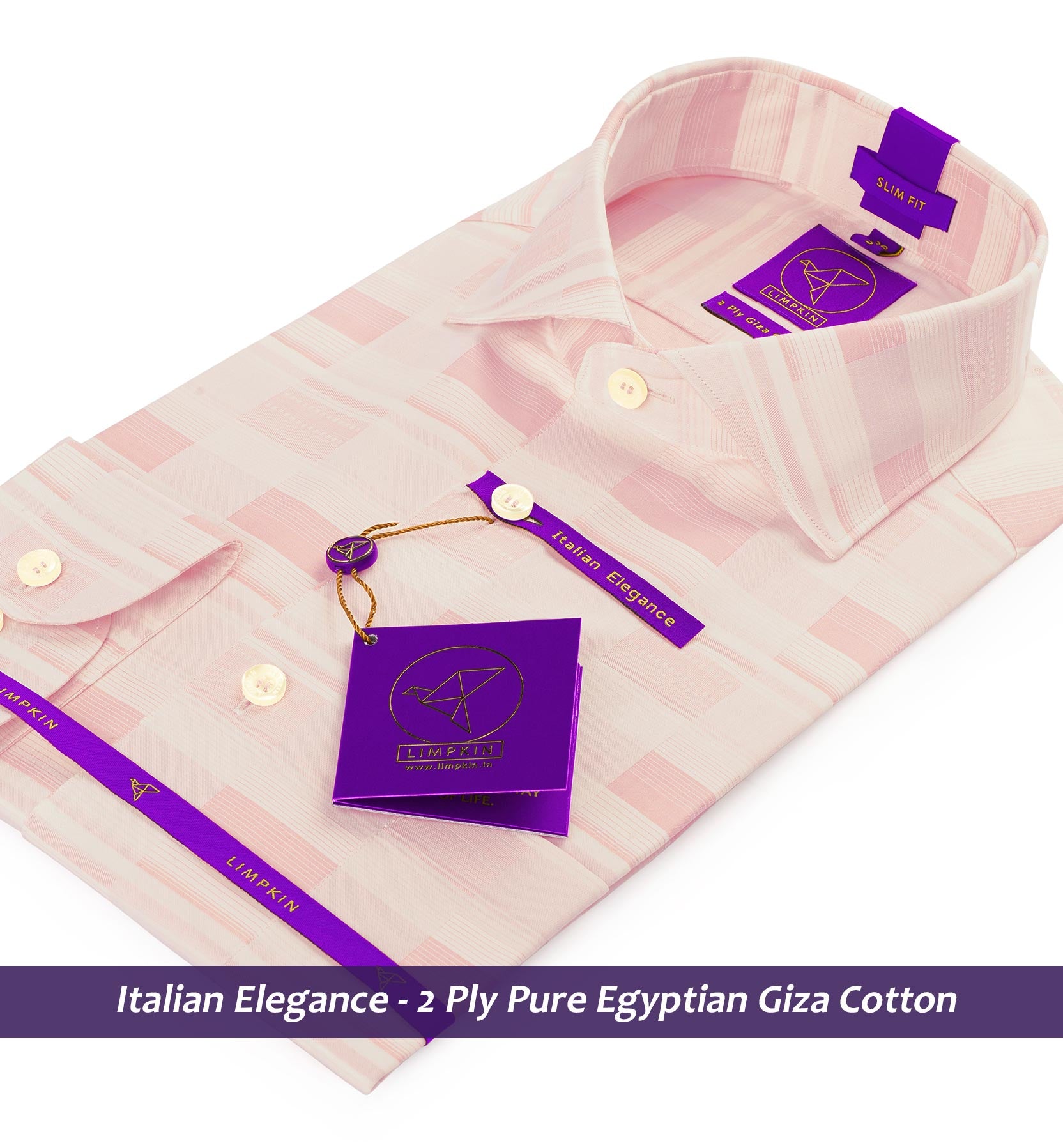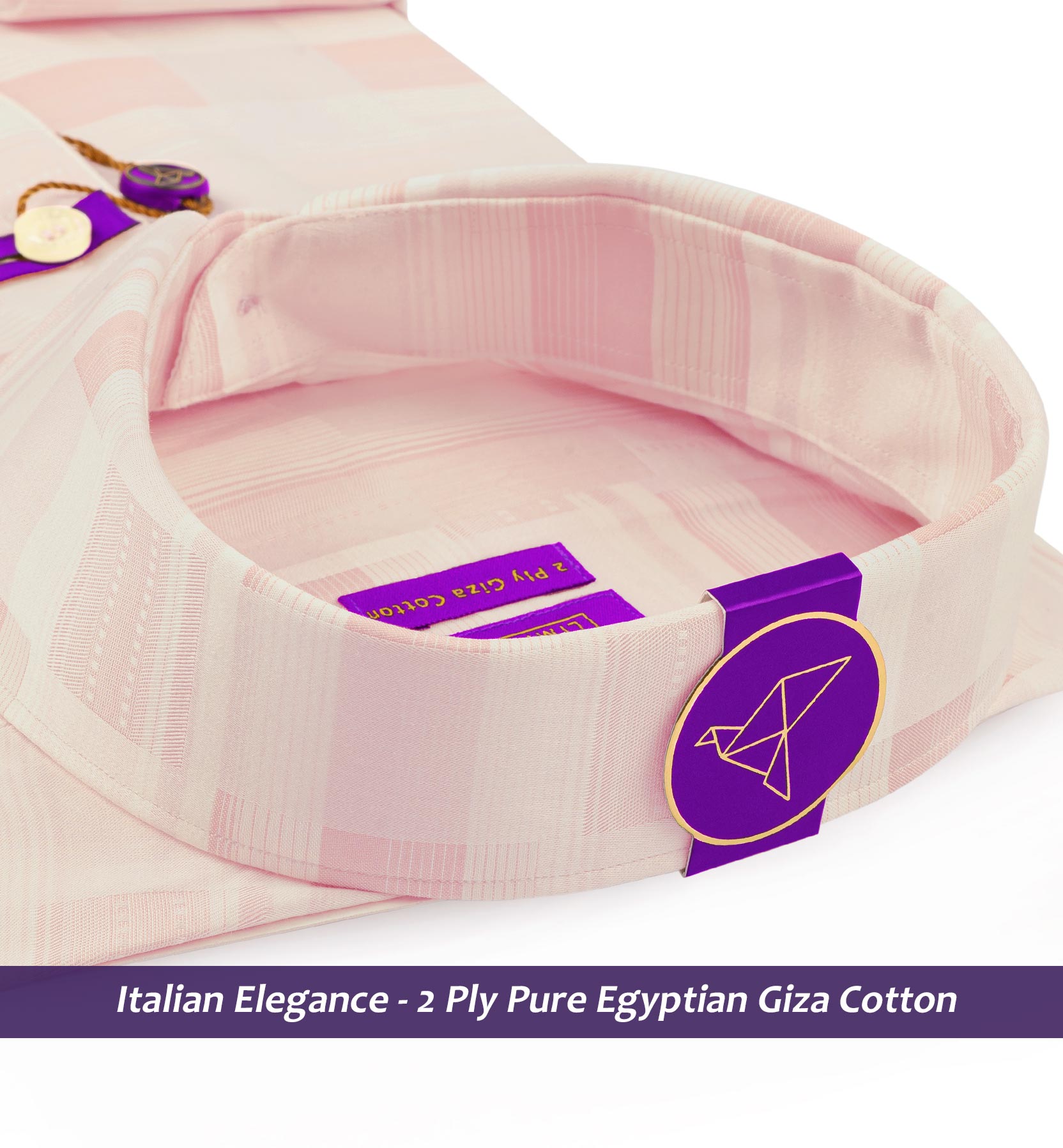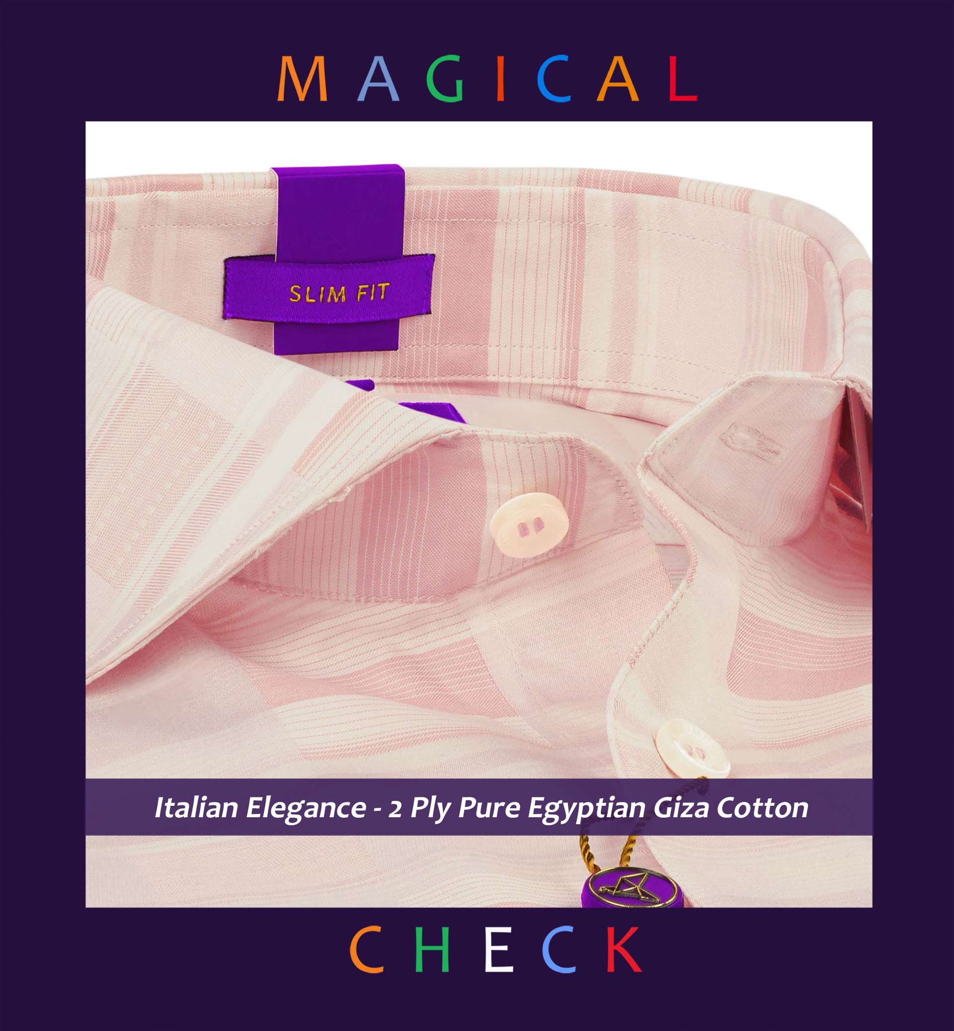 Slim/Regular fit shirt in Ivory & Lemonade Pink Check, Crafted from long staple 2 Ply Pure Egyptian Giza Cotton, Italian Elegance. Finished using superior Soft Touch technology, Rich luster and sheen as well as superior hand feel and drape.