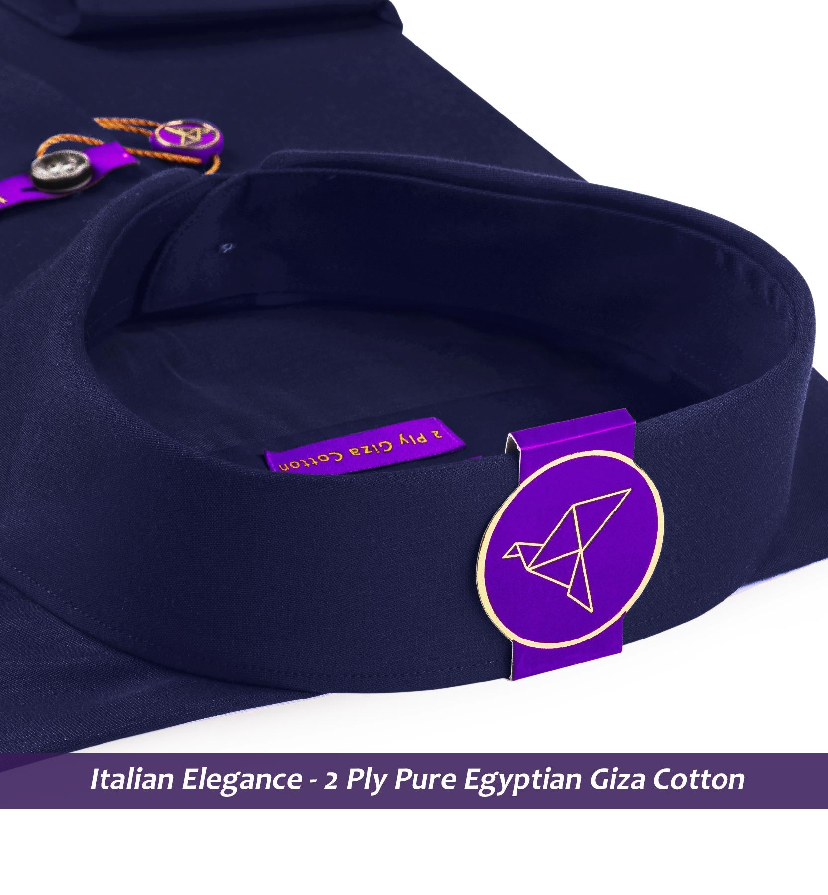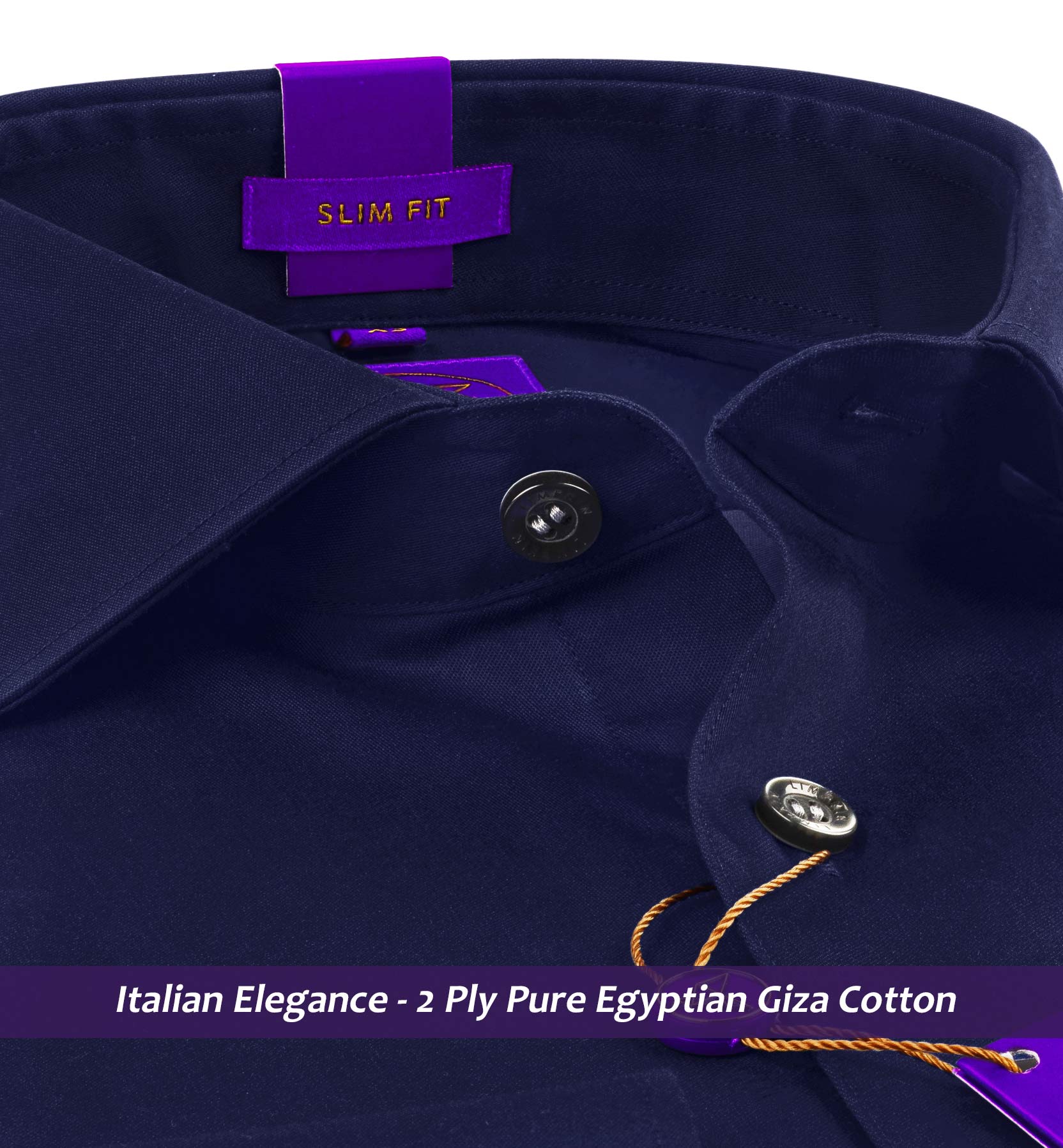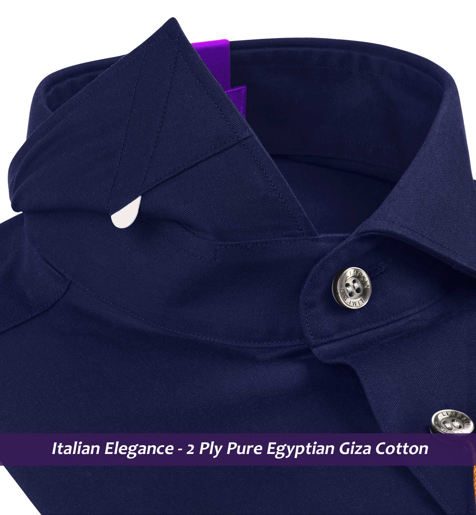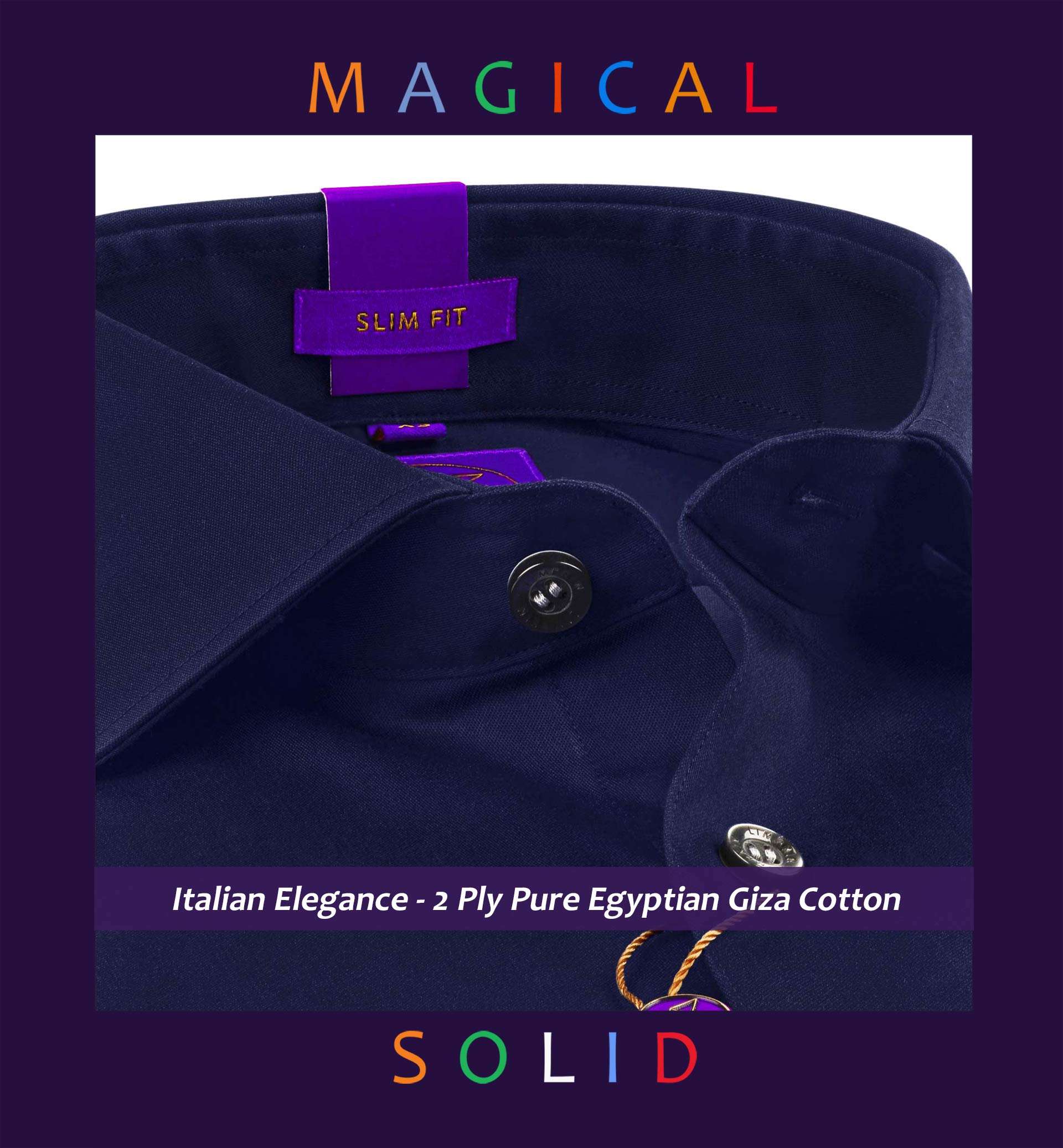 Slim/Regular fit shirt in Navy Magical Solid, Crafted from long staple 2 Ply Pure Egyptian Giza Cotton, Italian Elegance, Finished using superior Soft Touch technology, Twill Weave, Rich luster and sheen as well as superior hand feel and drape.