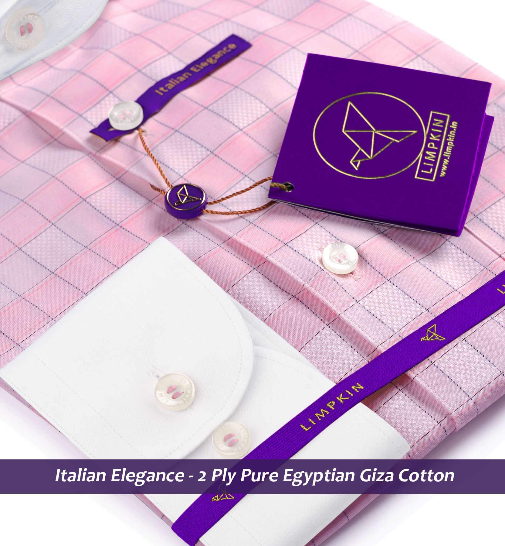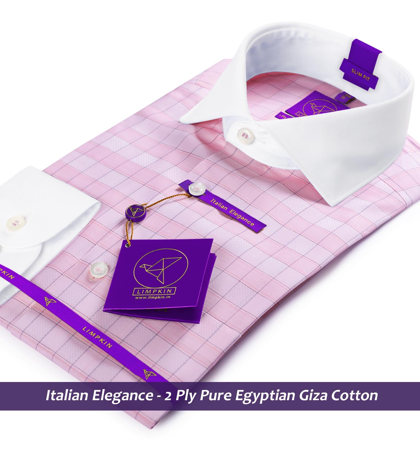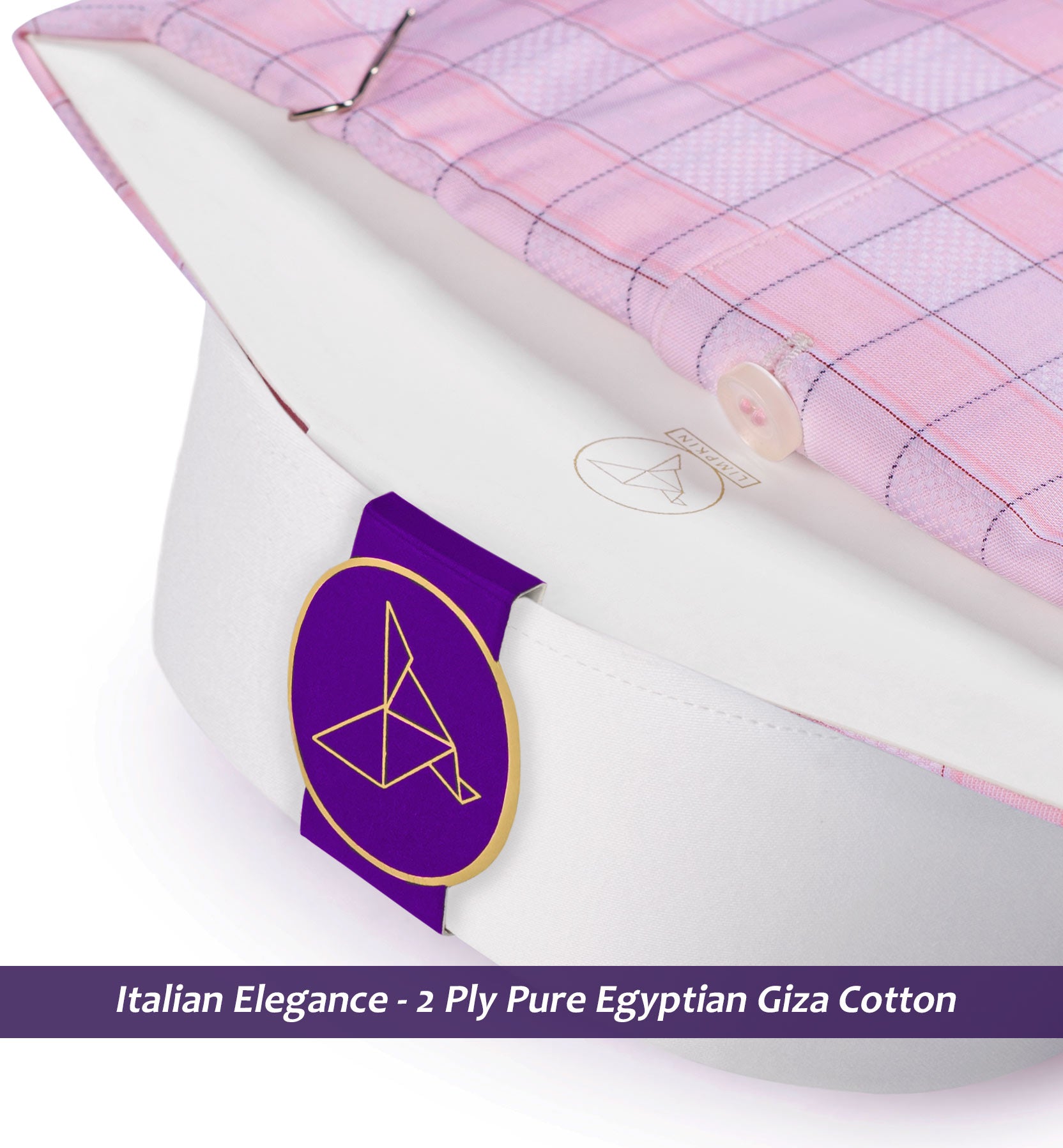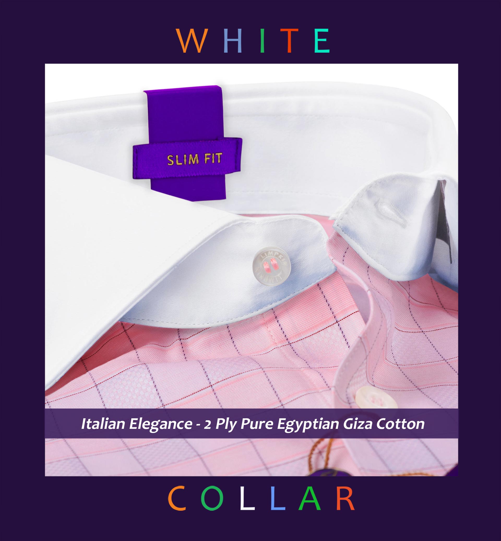 Slim/Regular fit shirt in Flamingo Pink & Navy Check with White Collar, Crafted from long staple 2 Ply Pure Egyptian Giza Cotton, Italian Elegance, Finished using superior Soft Touch technology, Rich luster and sheen as well as superior hand feel and drape.