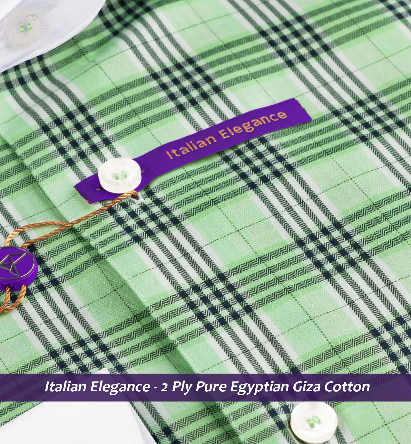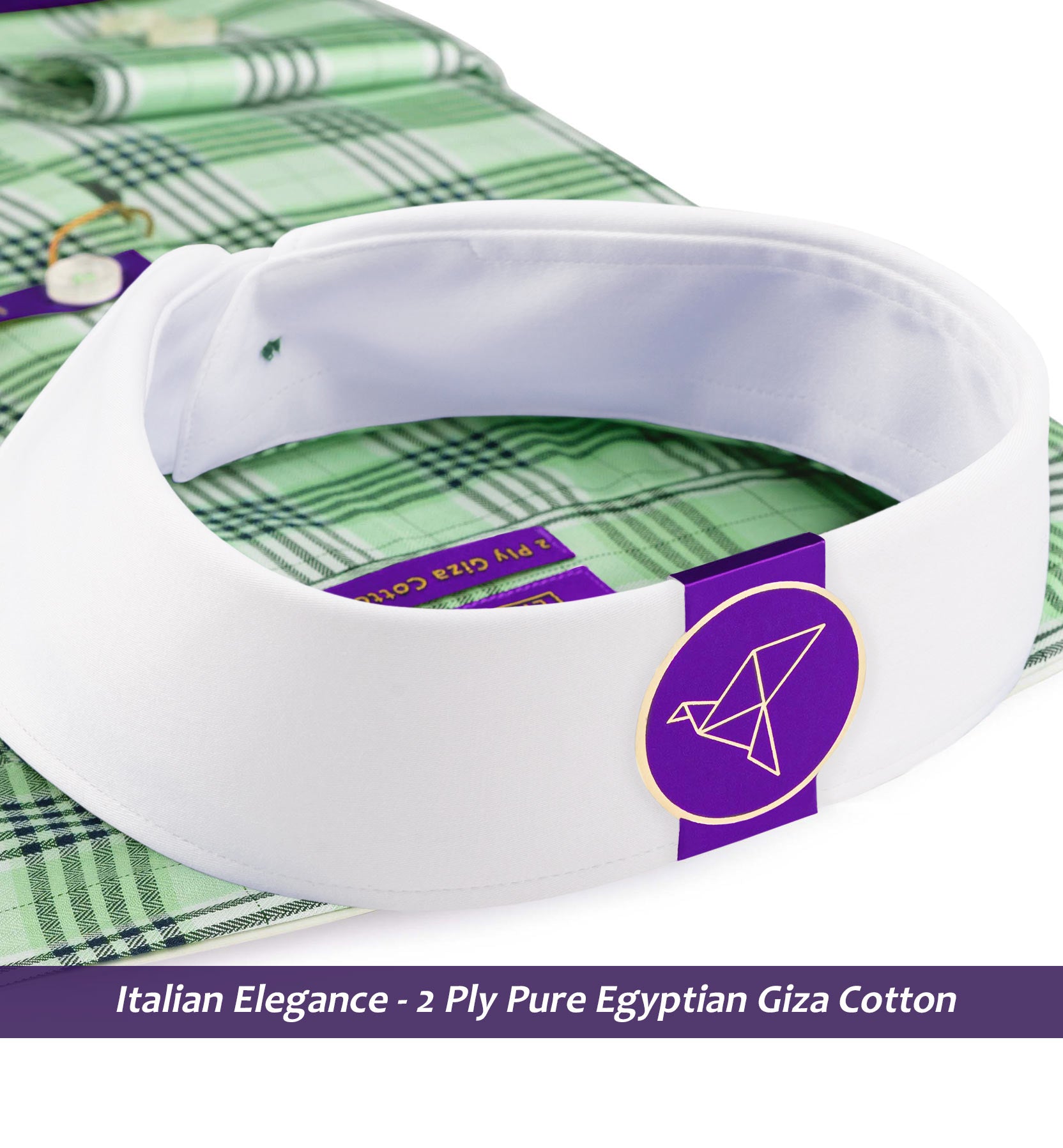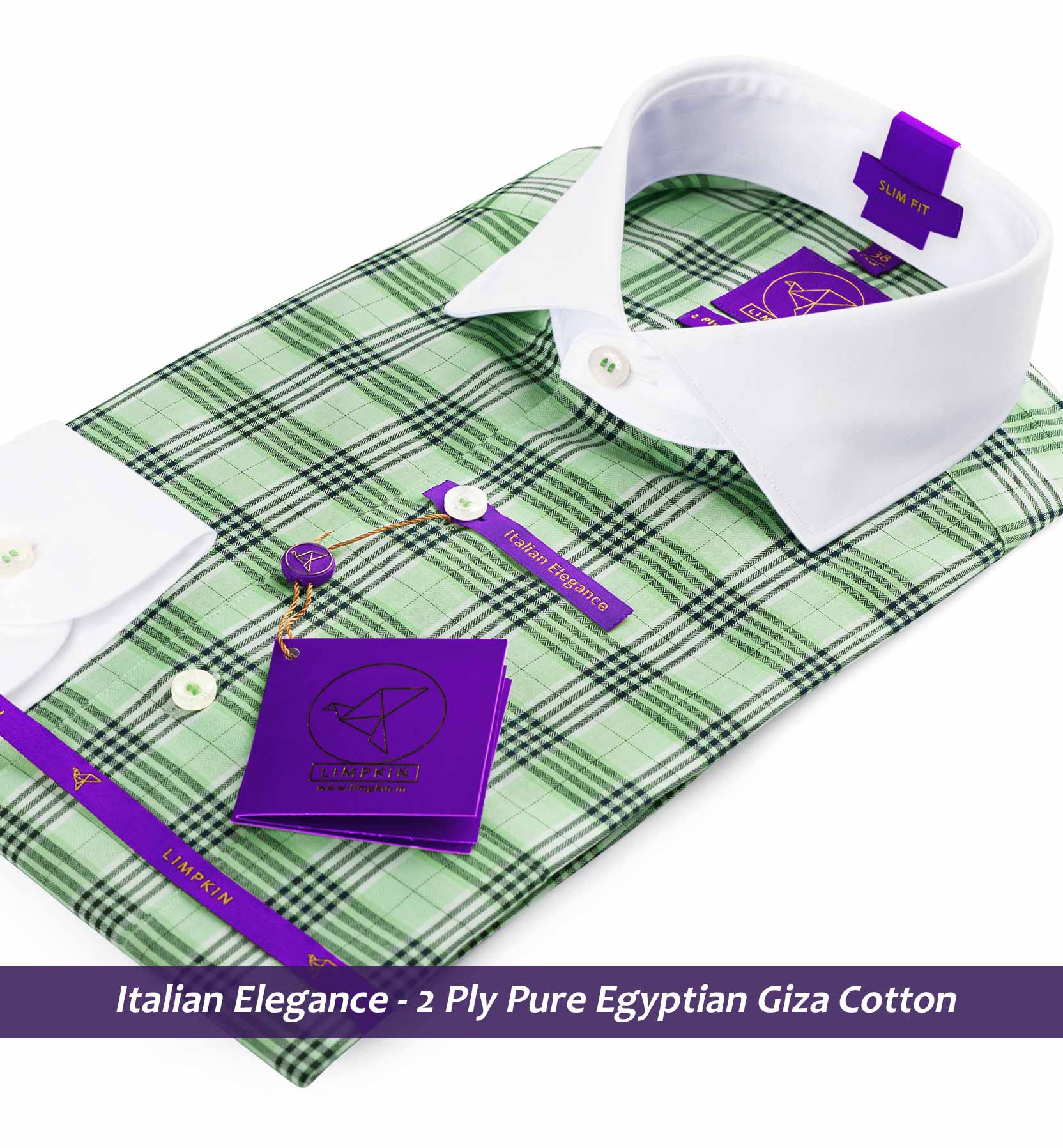 Slim/Regular fit shirt in Mint Green & White Check with White Collar, Crafted from long staple 2 Ply Pure Egyptian Giza Cotton, Italian Elegance, Finished using superior Soft Touch technology, Rich luster and sheen as well as superior hand feel and drape.